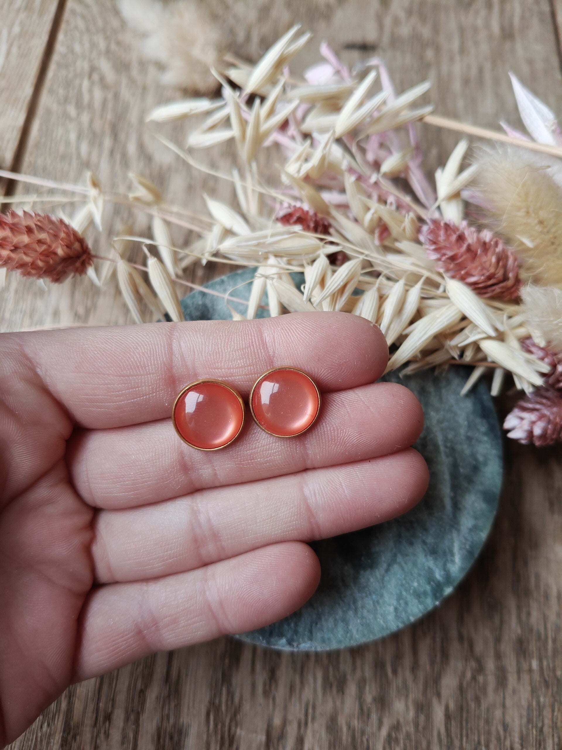 Oorbel KLEIN3: pasteloranje stud oorbellen