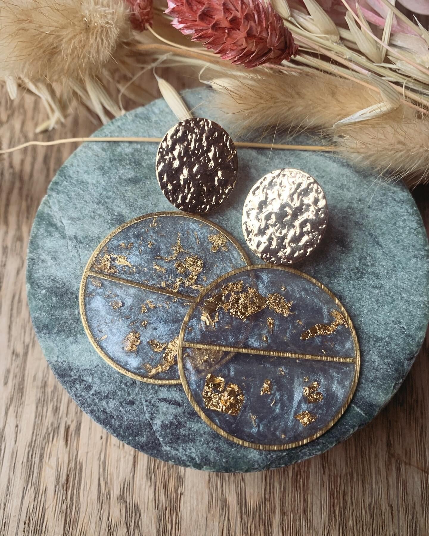 Oorbel: gouden oorbel met grijze hanger met goudfolie