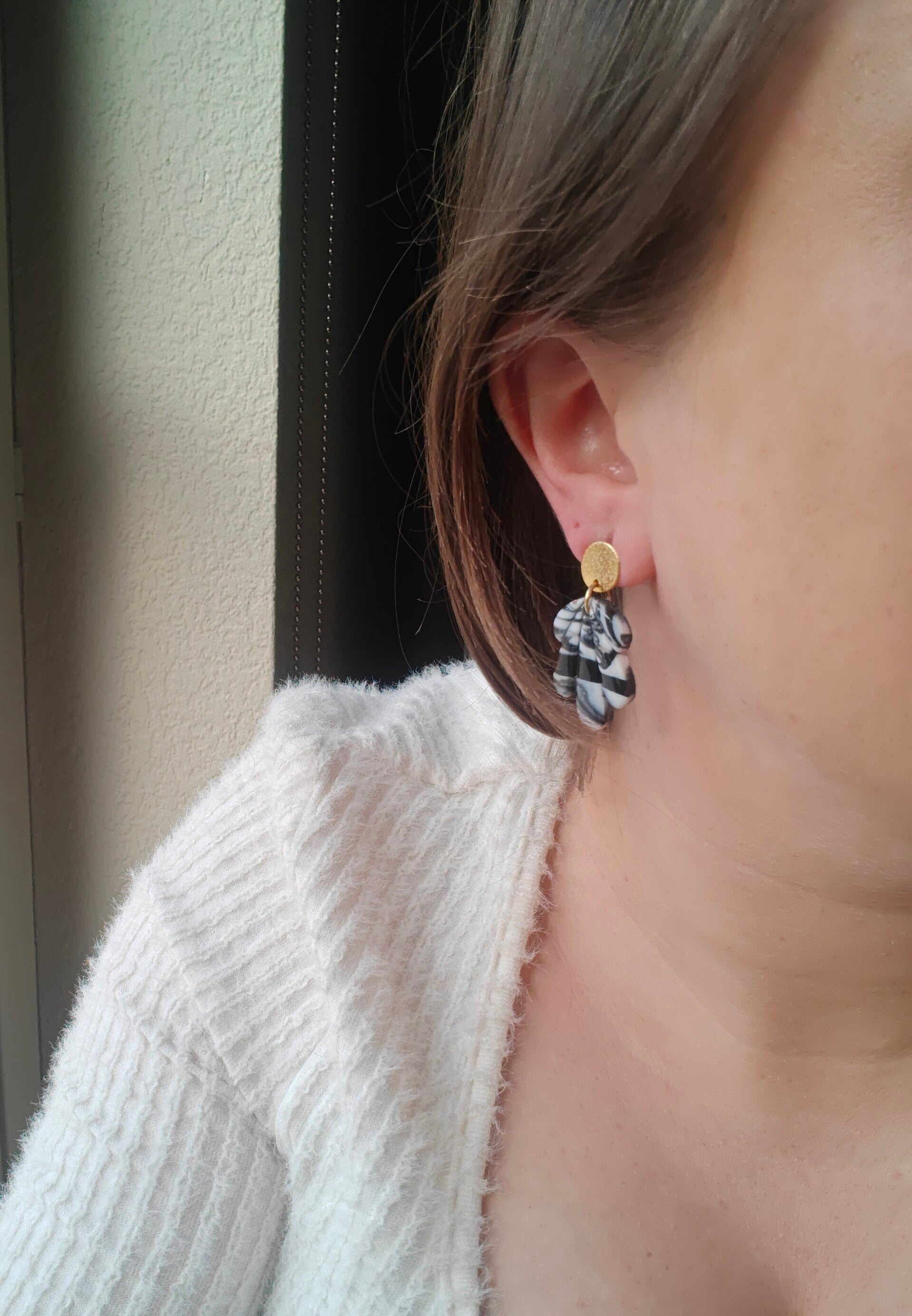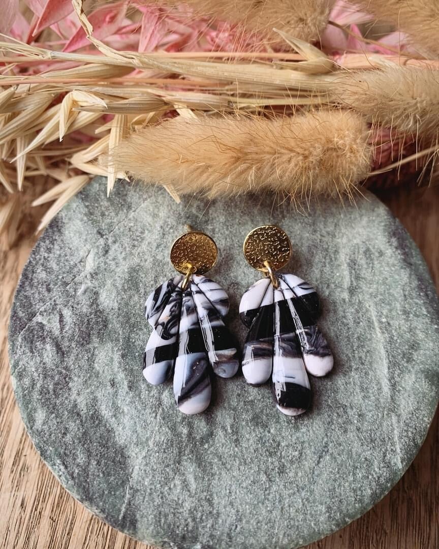 Oorbel ZW3: zwart/ grijze oorbel uit klei