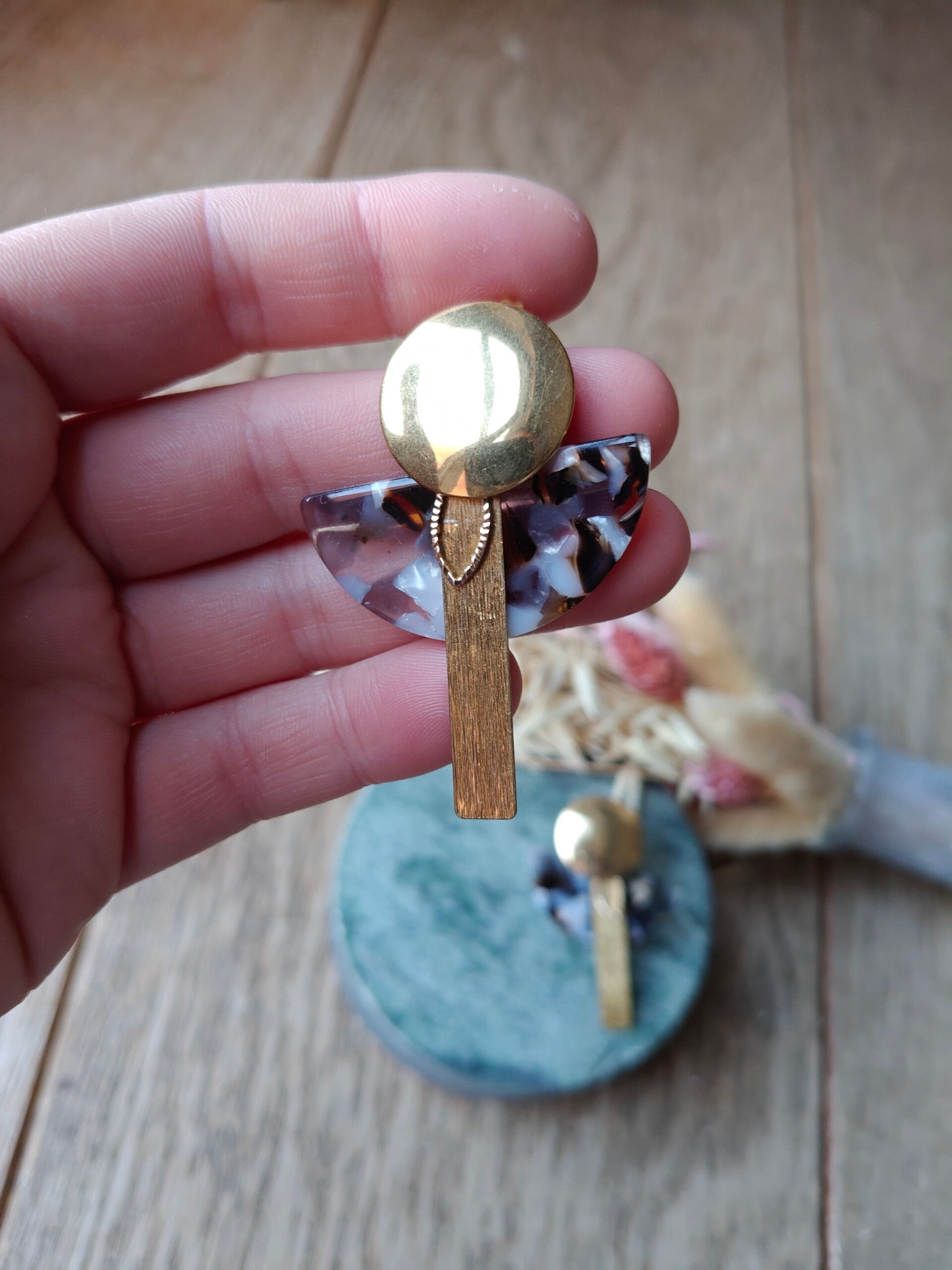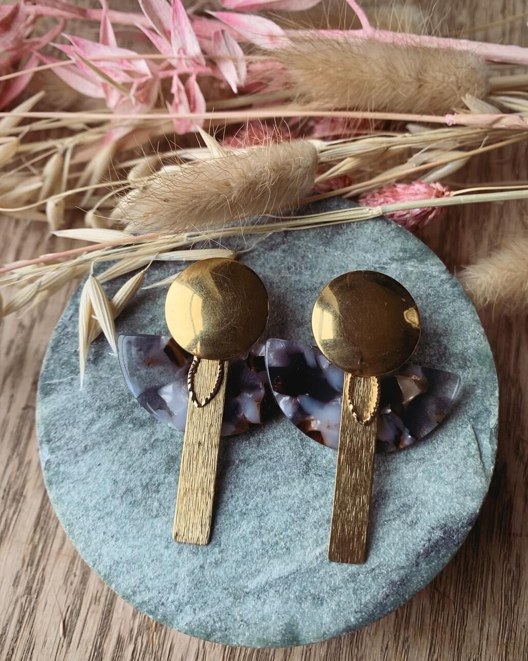 Oorbel BR2: donker bruine oorbel met gouden staafje