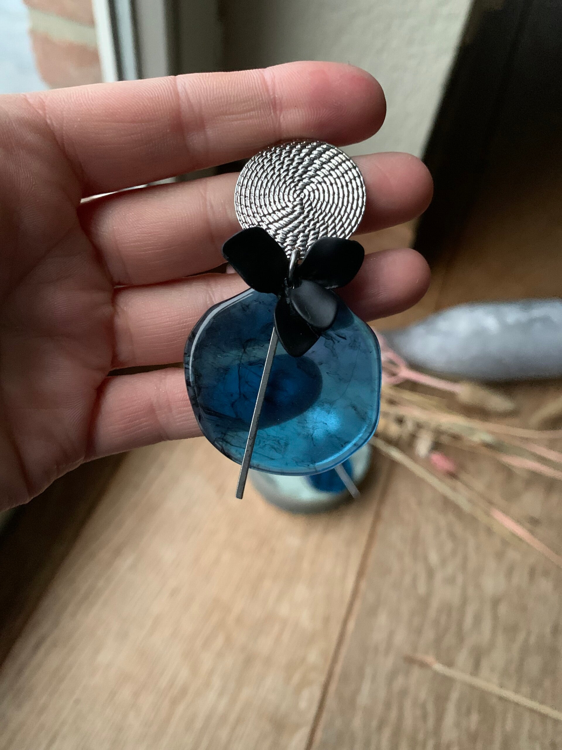 Oorbel B7/B8/B9: blauwe hanger met zilveren prikker