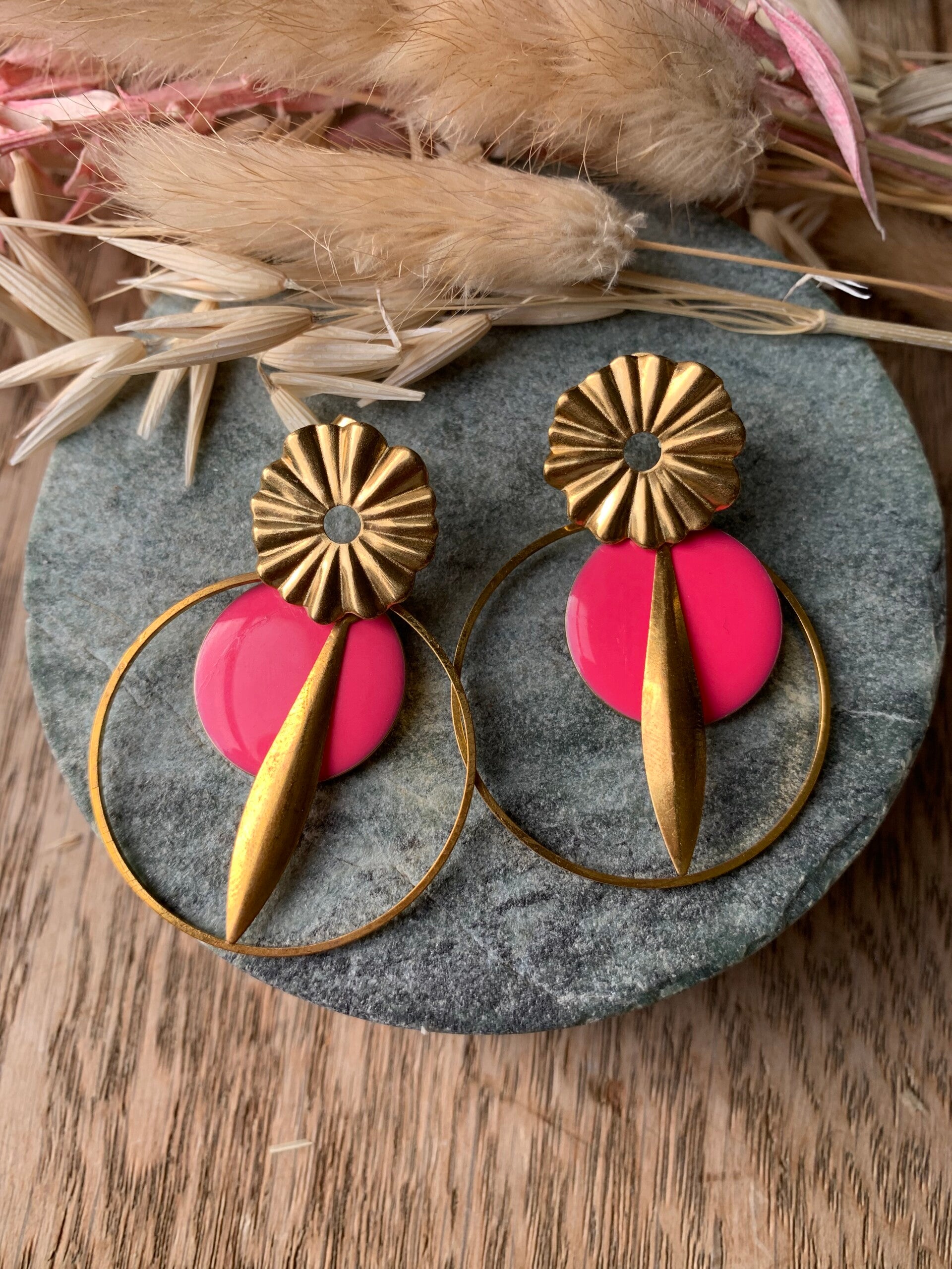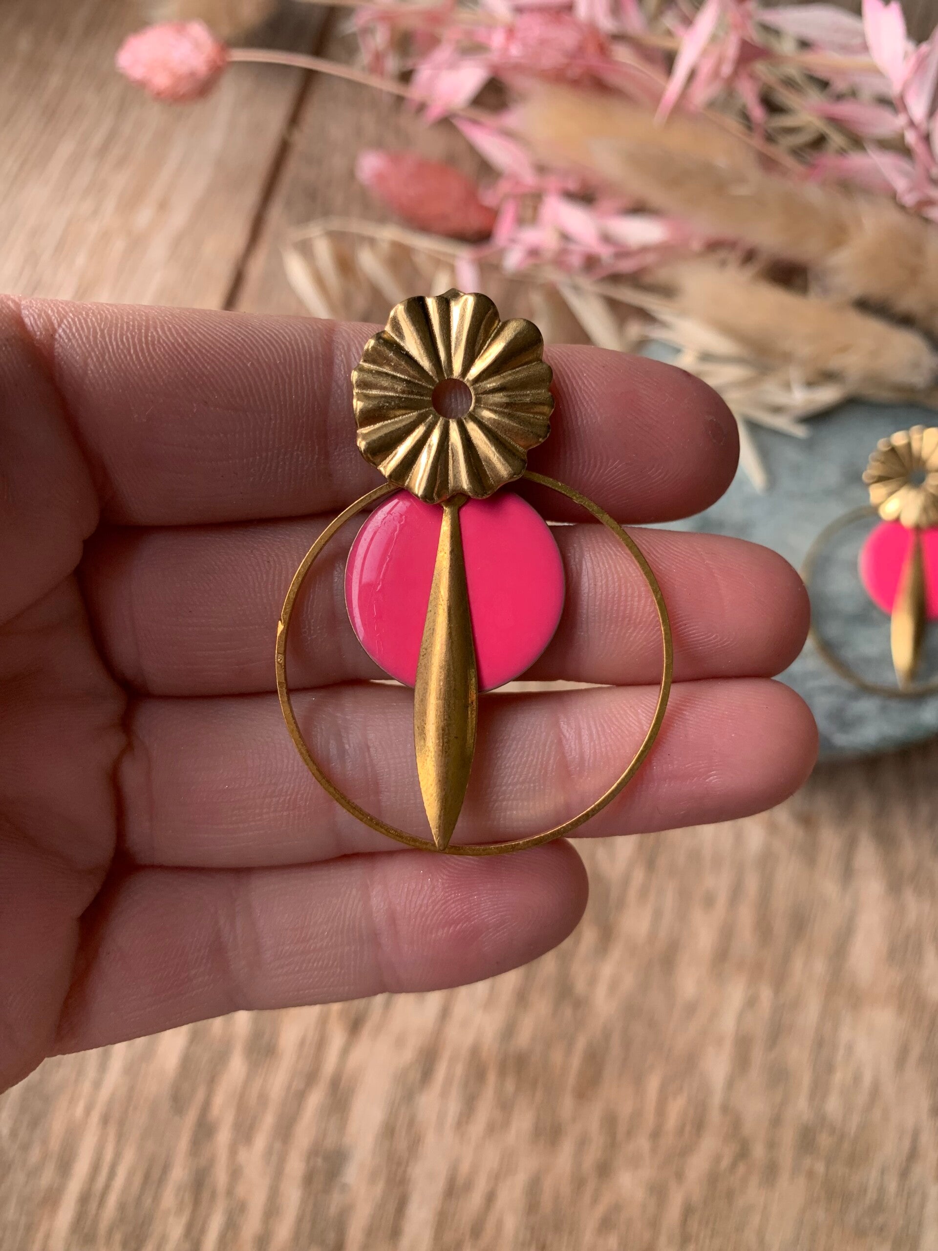 Oorbel: roze oorbel met gouden cirkel