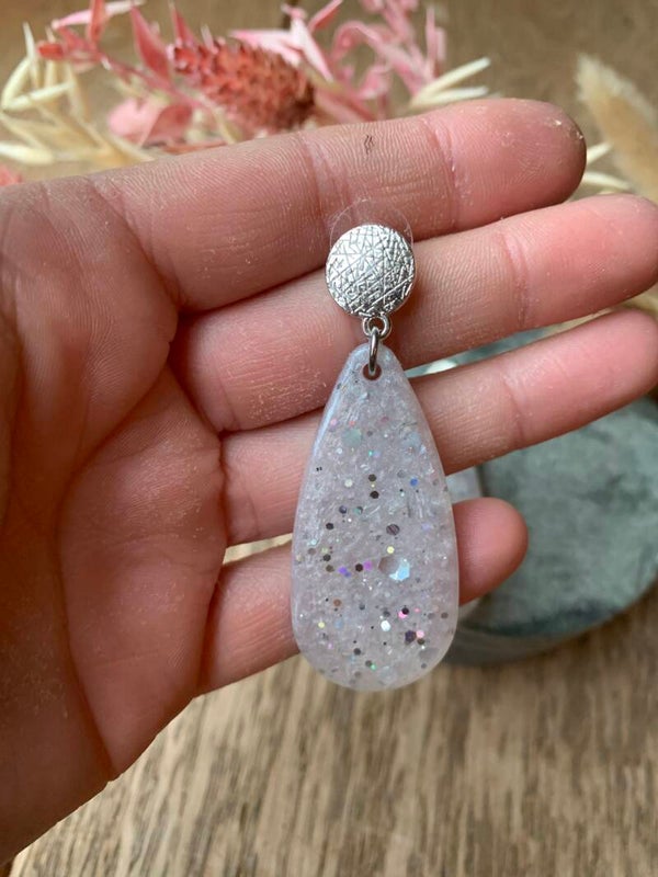 Oorbel W4: wit/grijze hanger met zilveren prikker