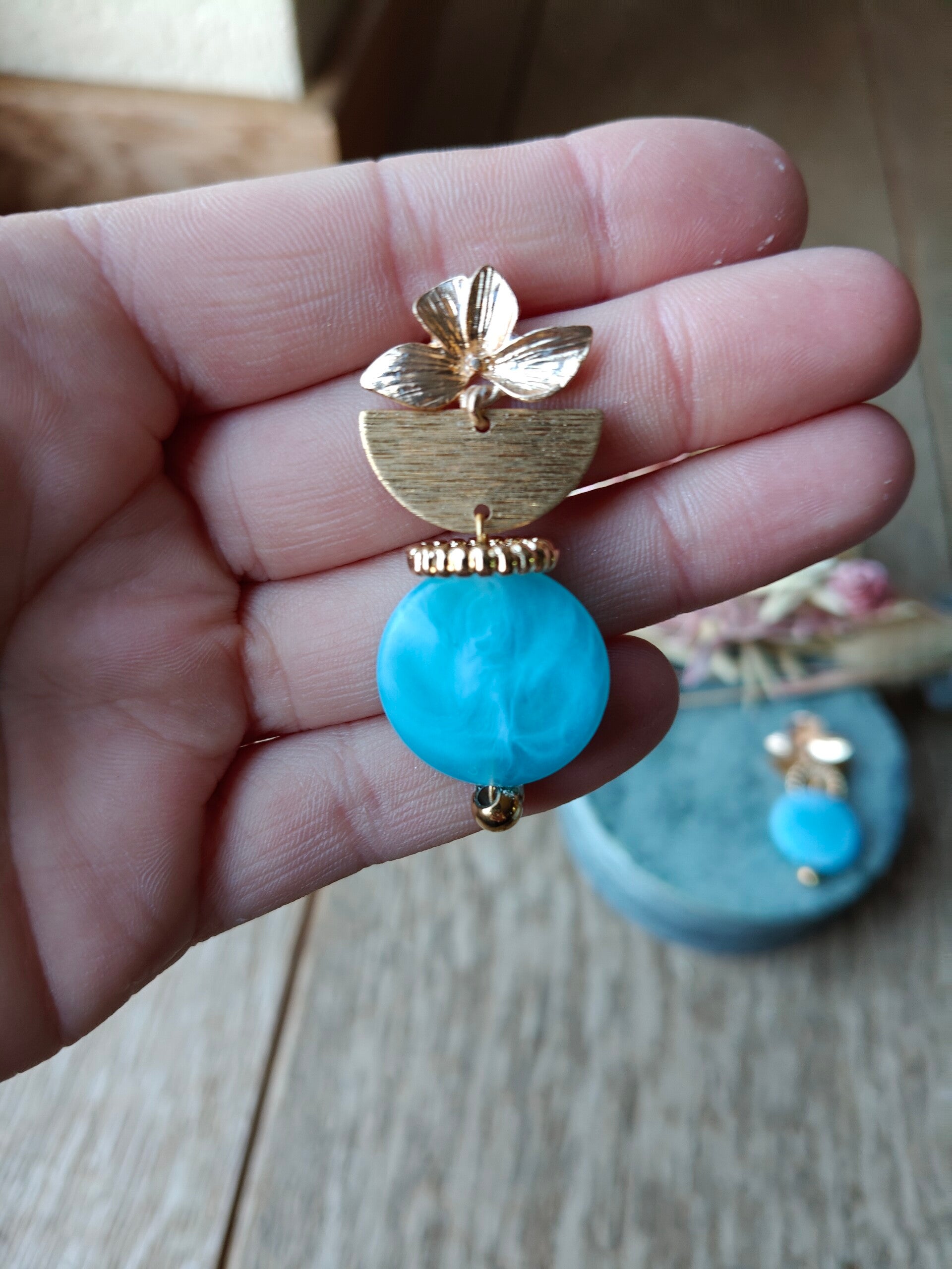 Oorbel B14: blauwe oorbel met matblauwe parel
