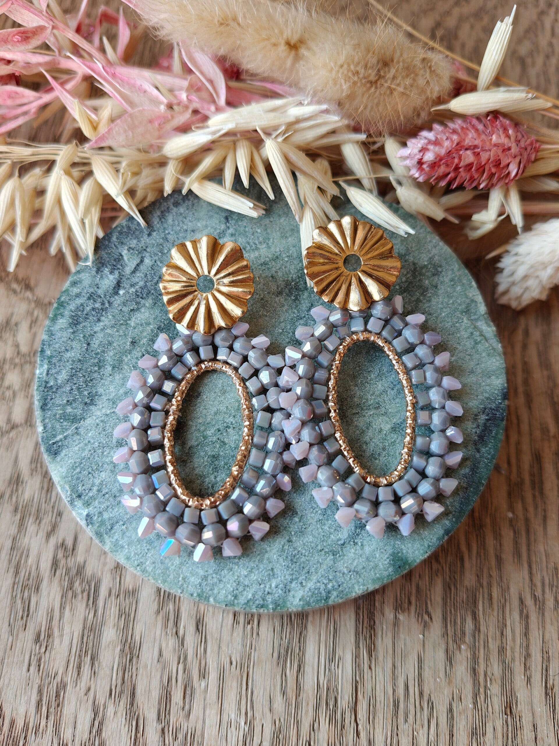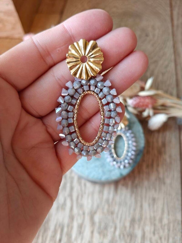 Oorbel: kralenoorbel grijze /pastelpaars