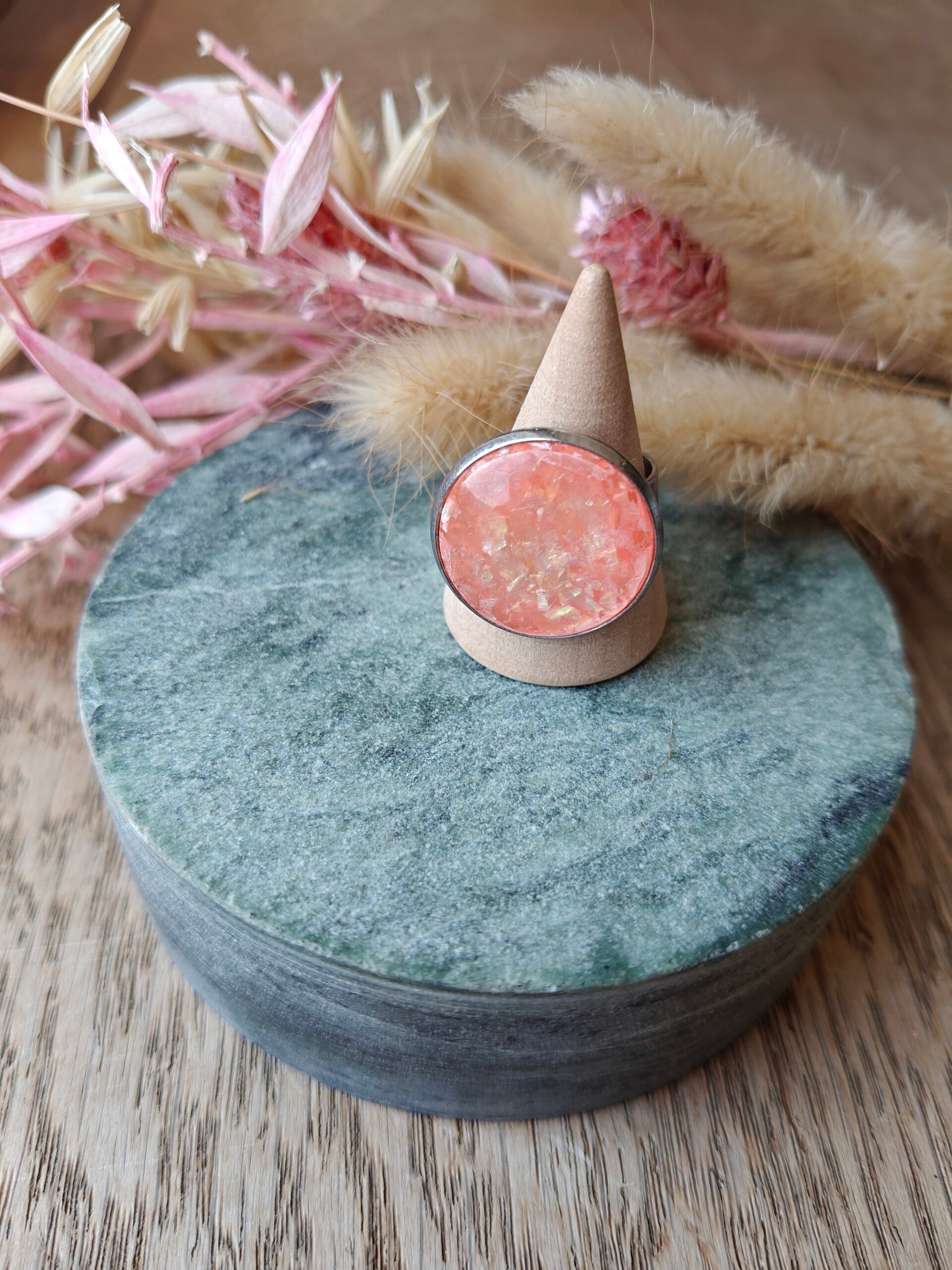 Ring: verstelbare feloranje ring met zilverkleurige frame