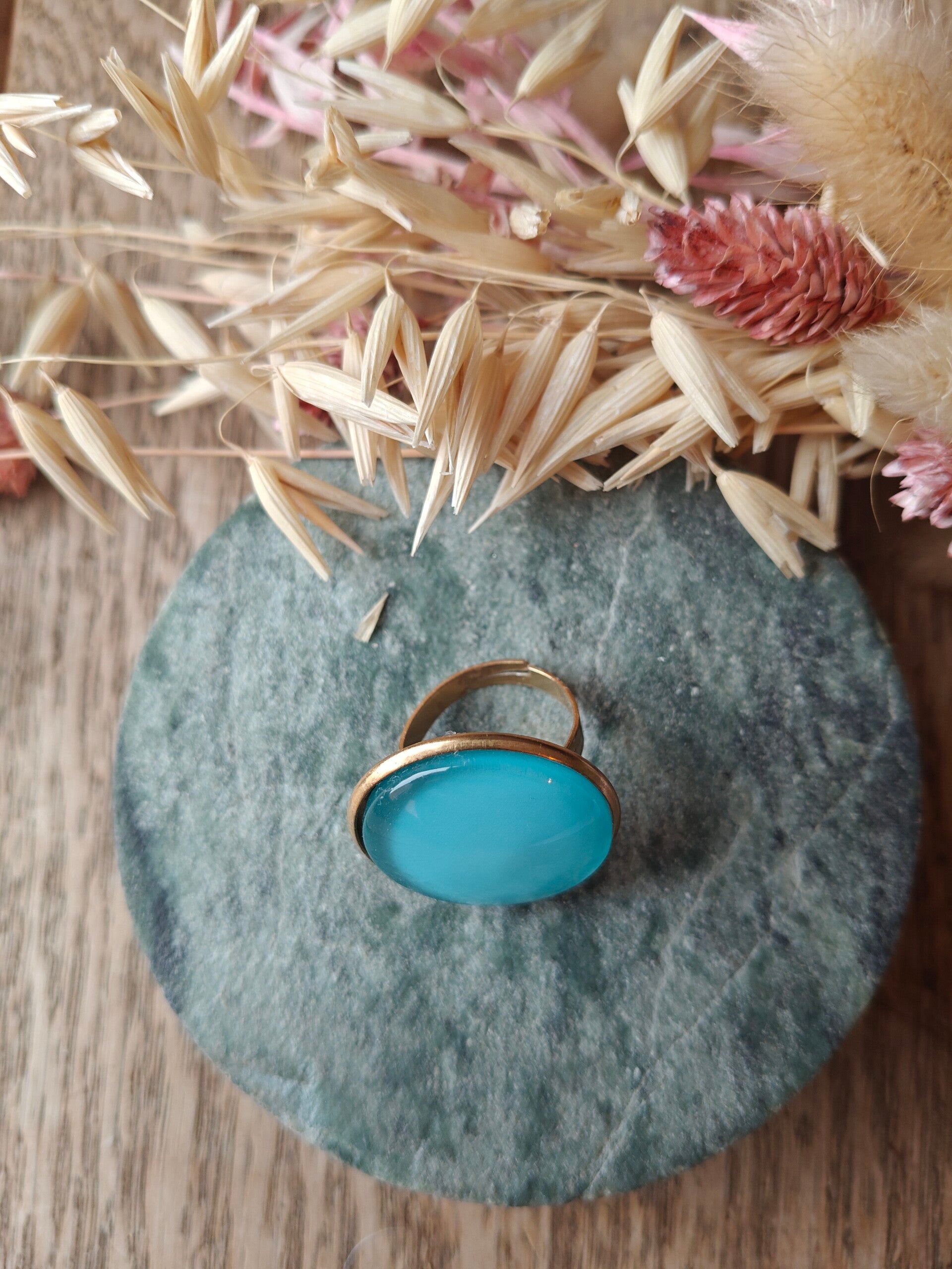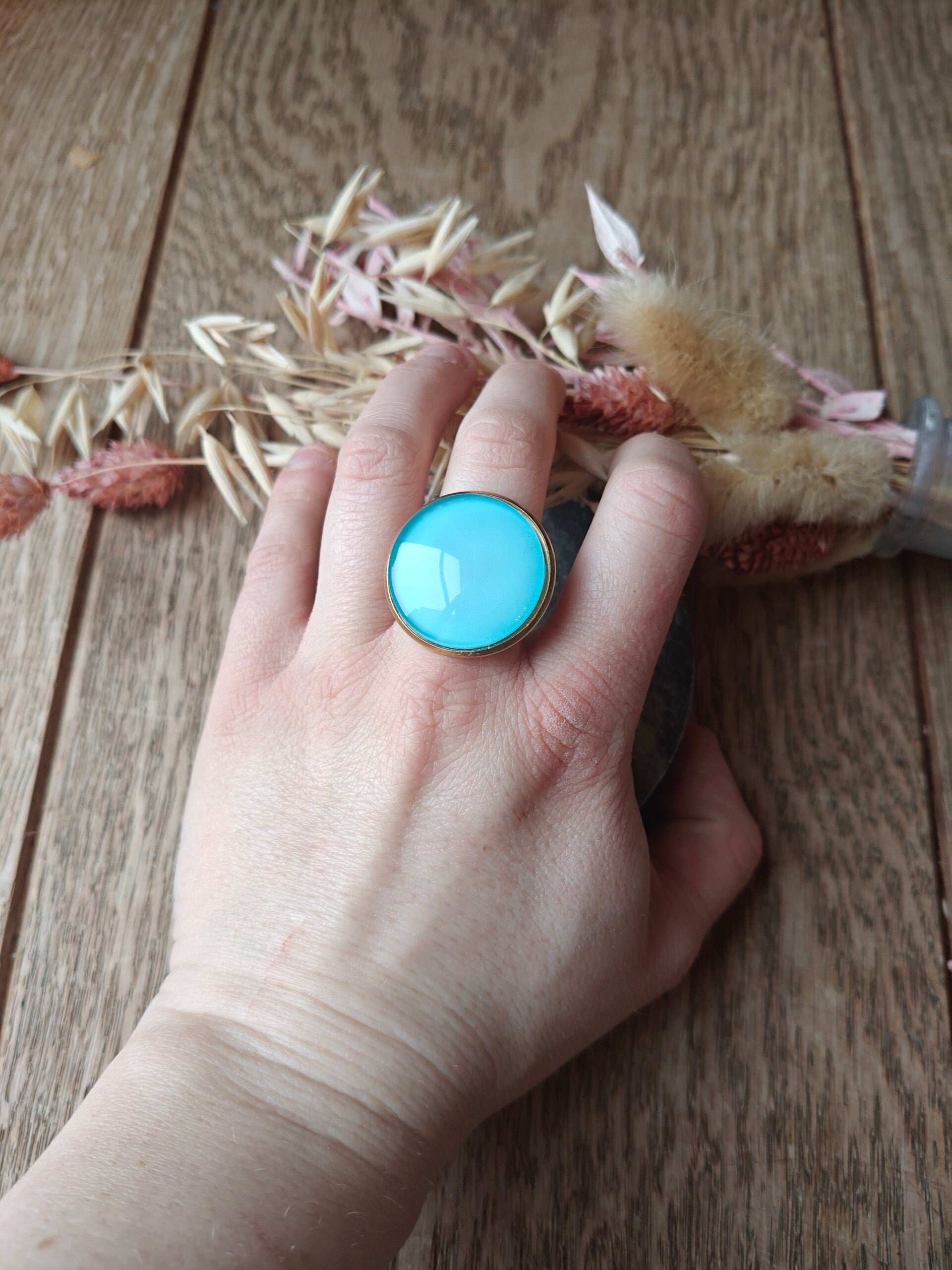 Ring B6: verstelbare lichtblauwe ring