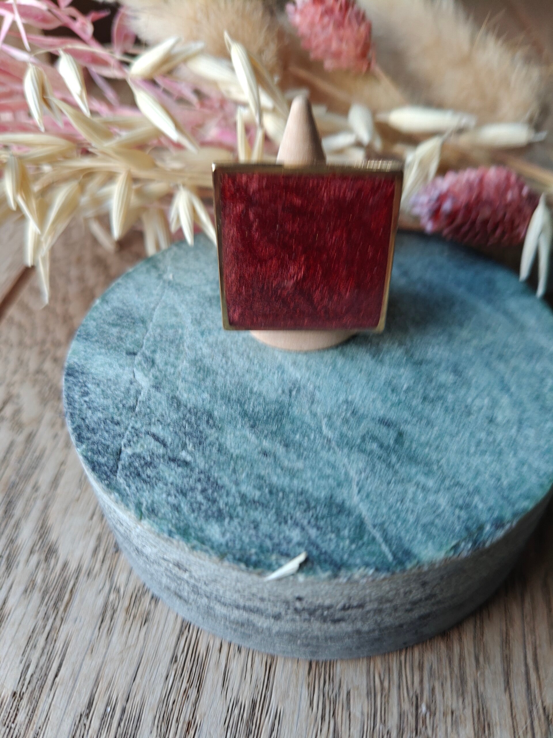 Ring R2: Bordeaux rode vierkante ring