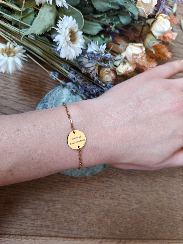 Gegraveerd armbandje: jouw liefde maakt ons thuis
