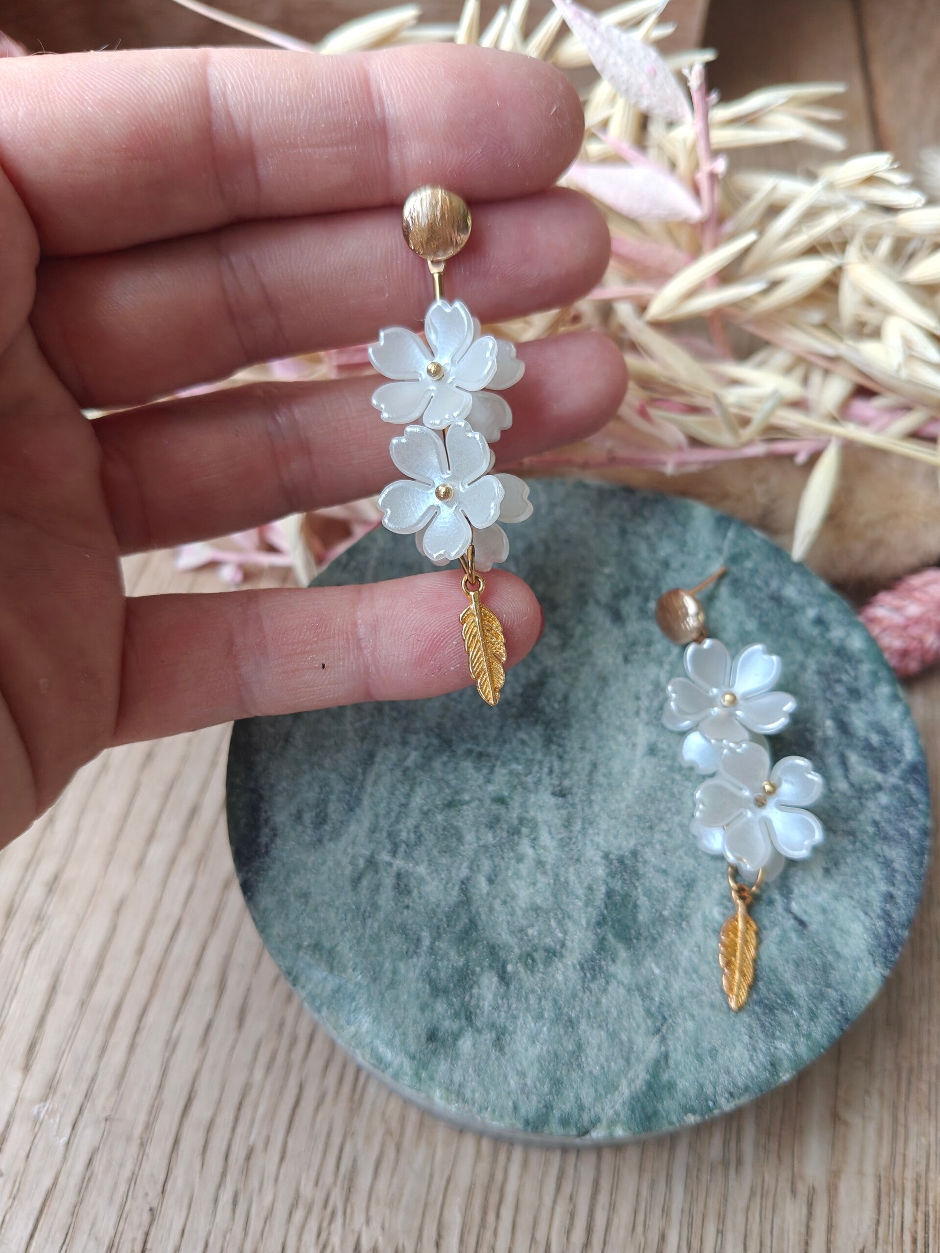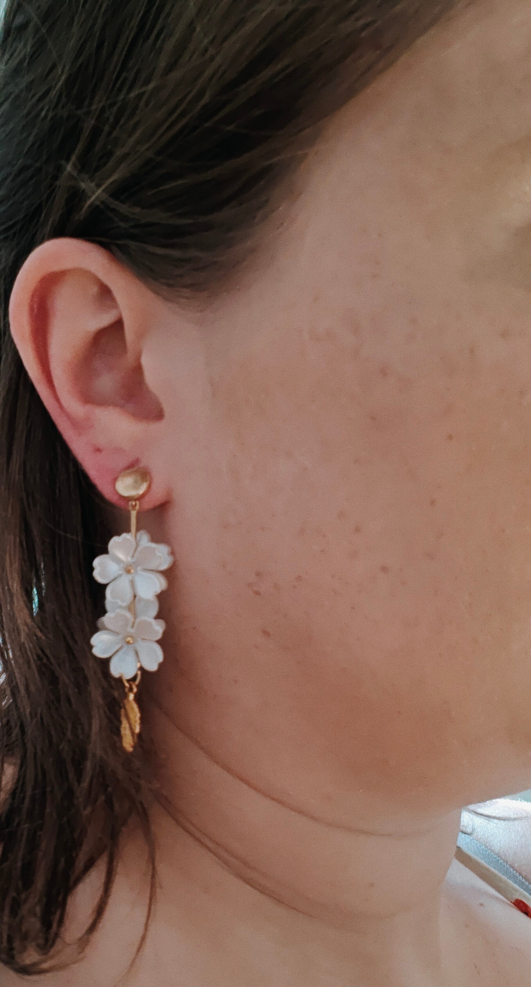 Oorbel: witte bloemen