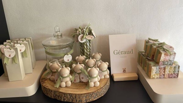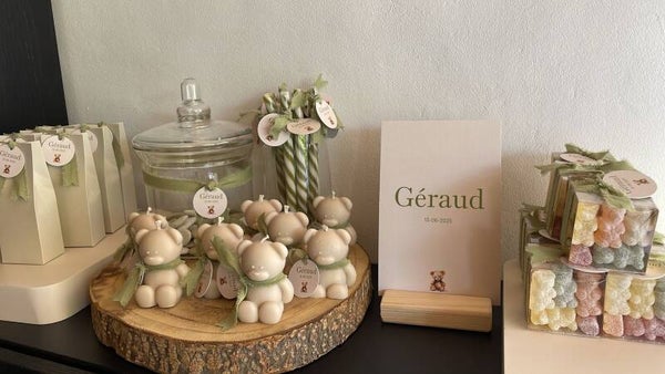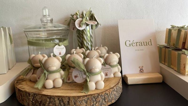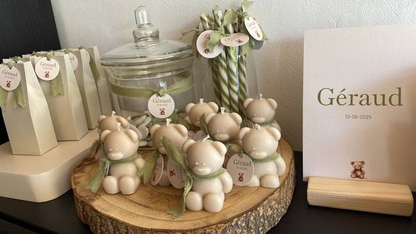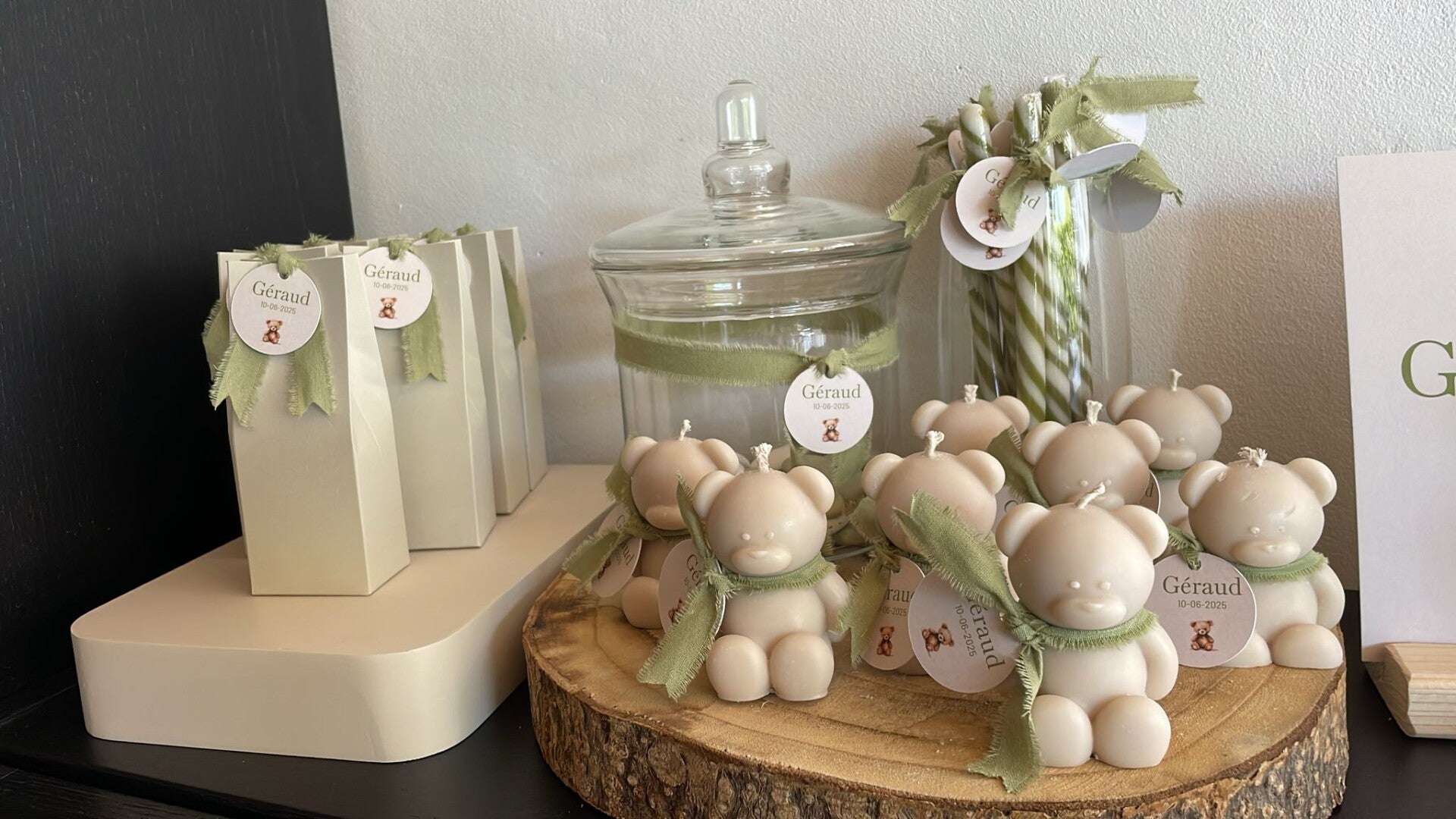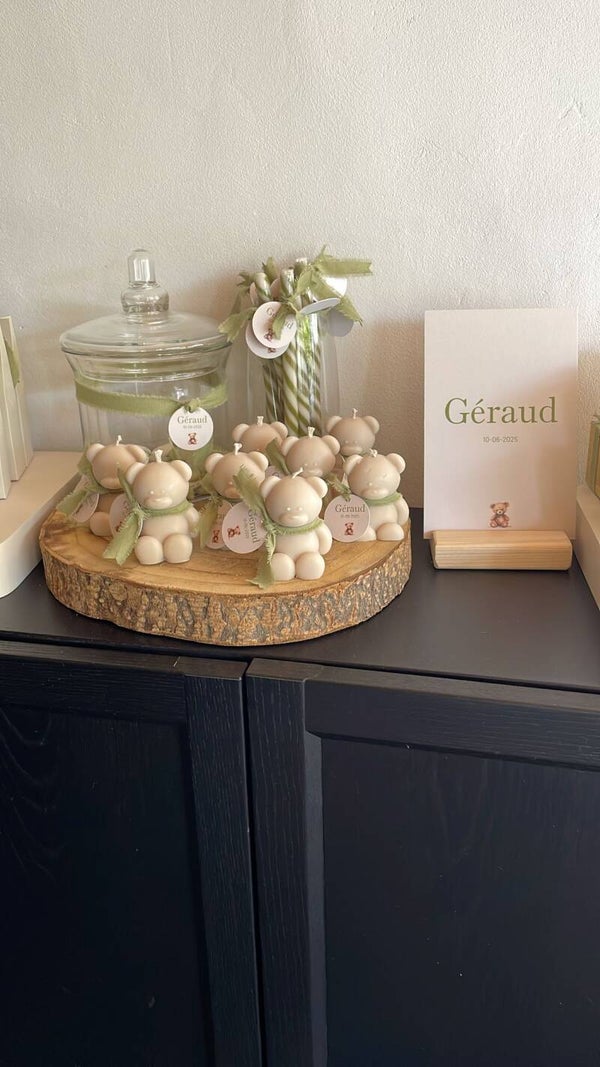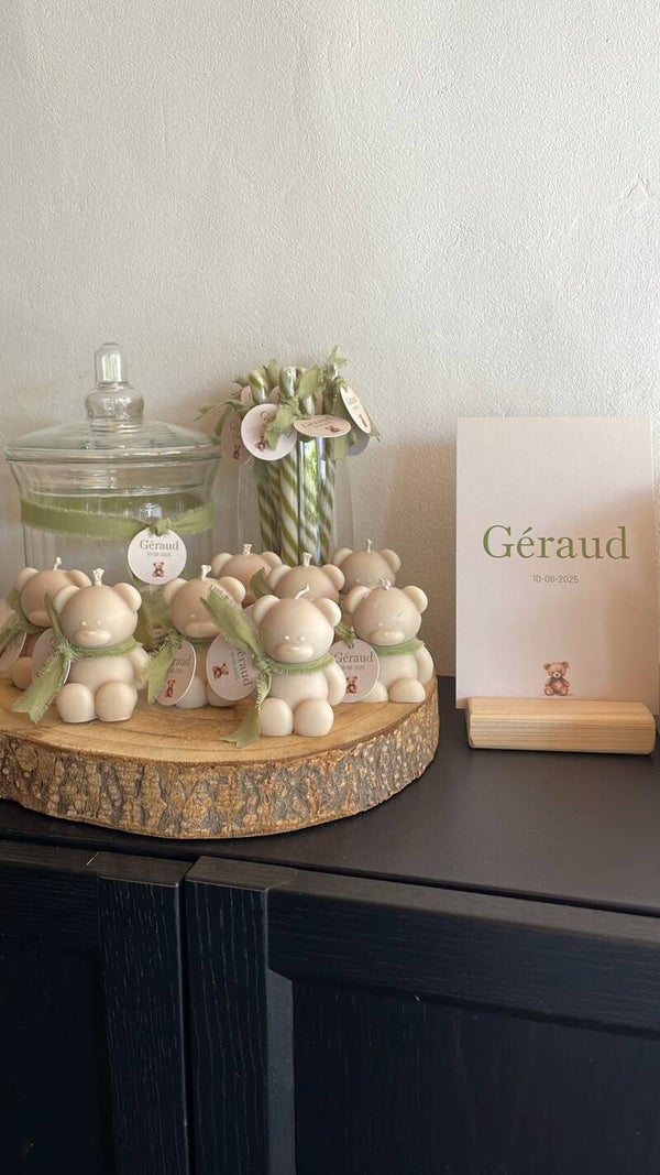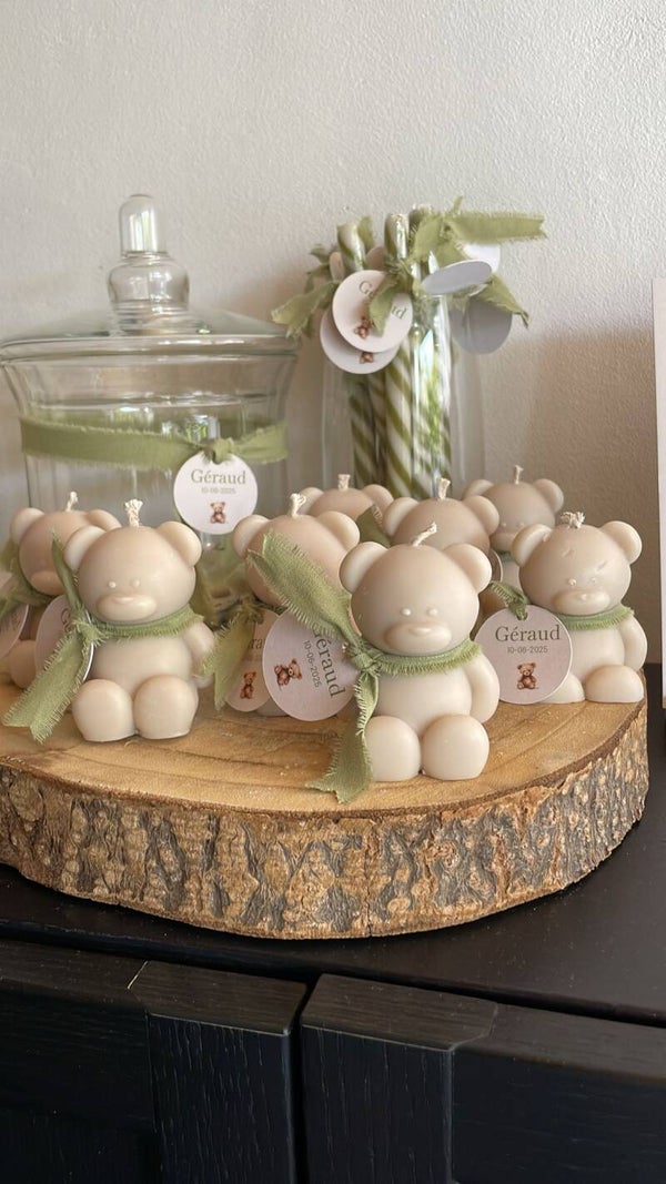 Deze schattige teddybeer-kaarsjes zijn speciaal gemaakt als doopsuiker 💚 – een uniek, duurzaam en hartverwarmend bedankje voor een heel bijzondere dag.