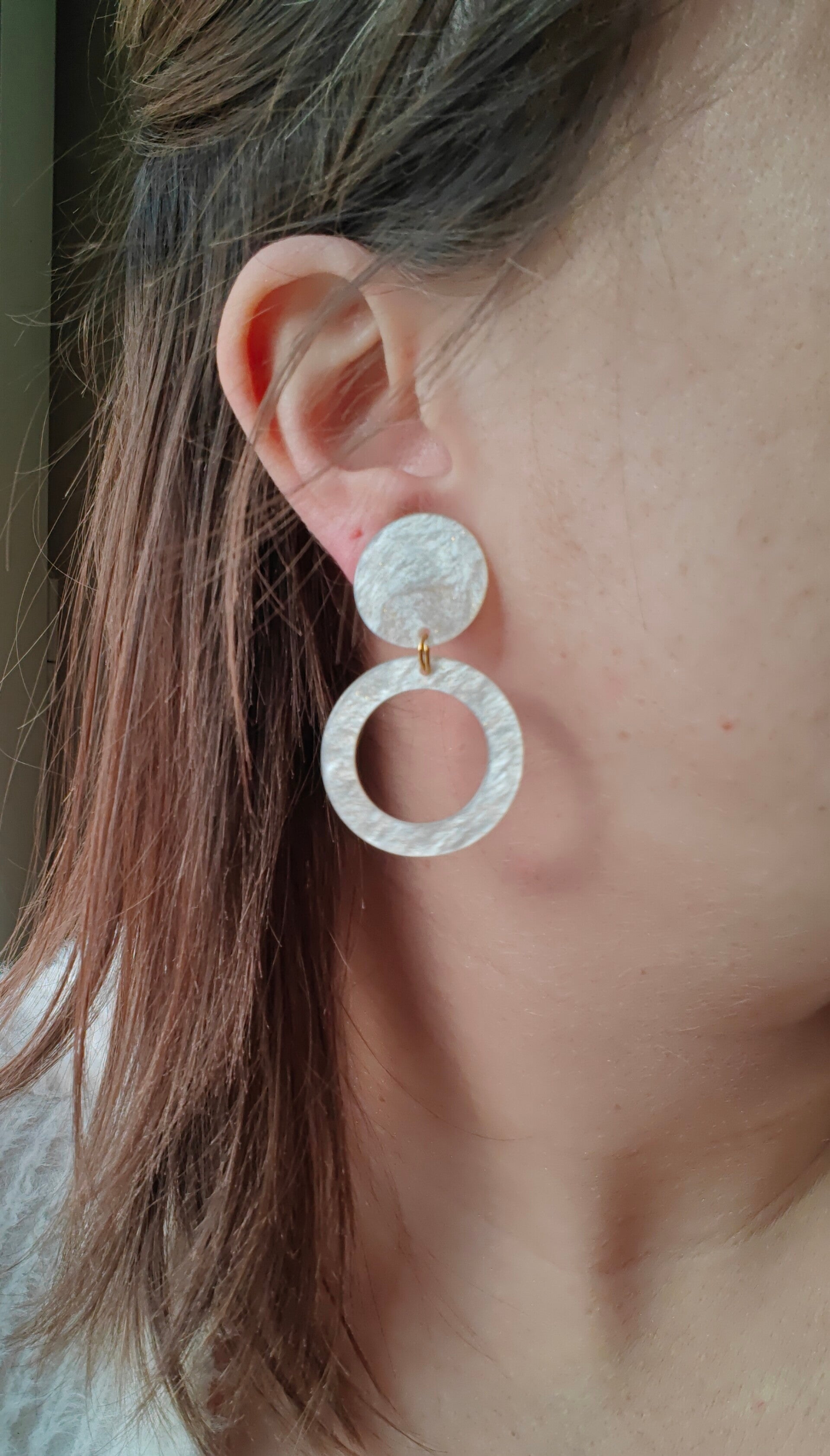 Oorbel W7/W8/W9: witte oorbellen met gouden glitters