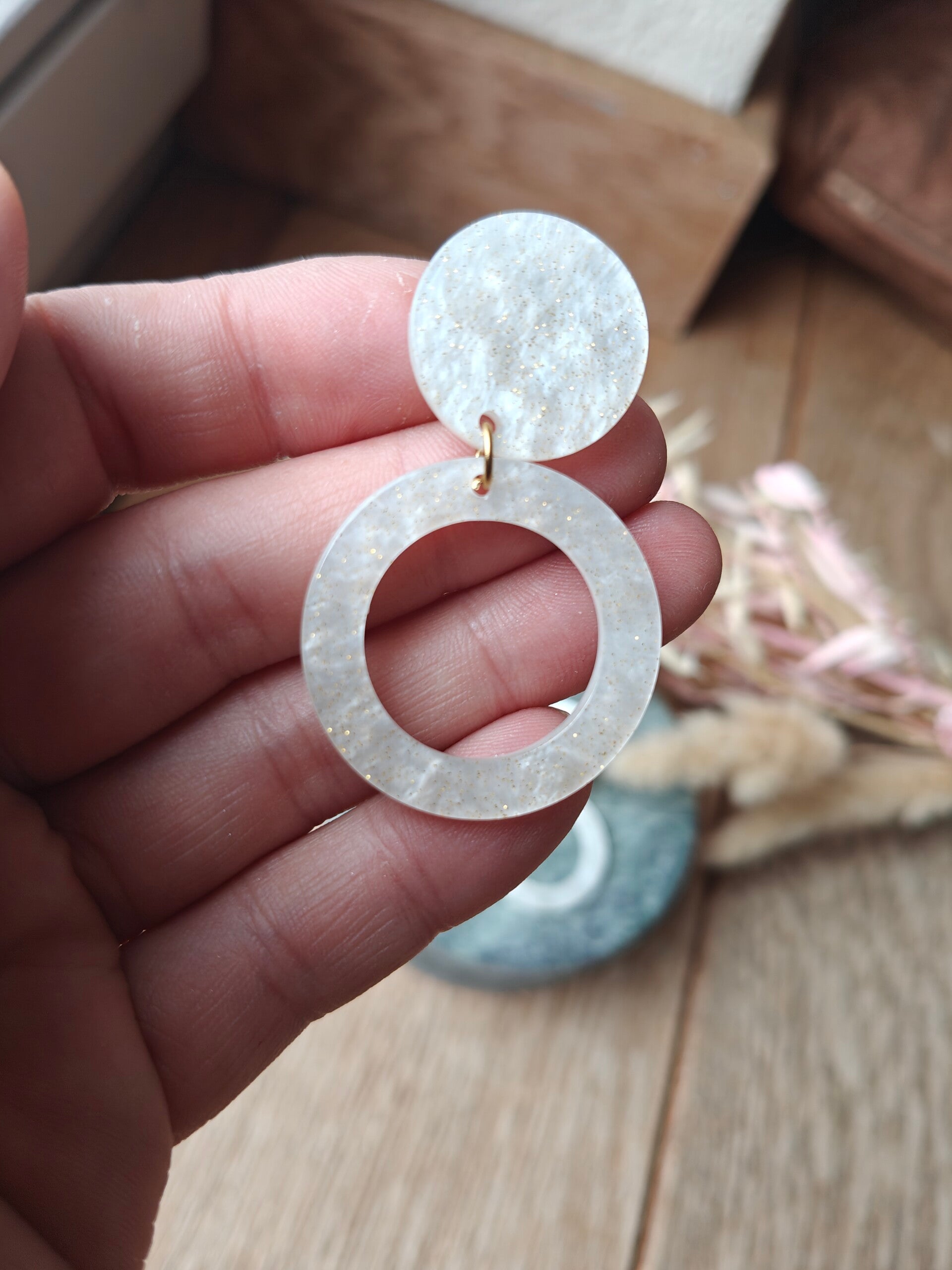 Oorbel W7/W8/W9: witte oorbellen met gouden glitters