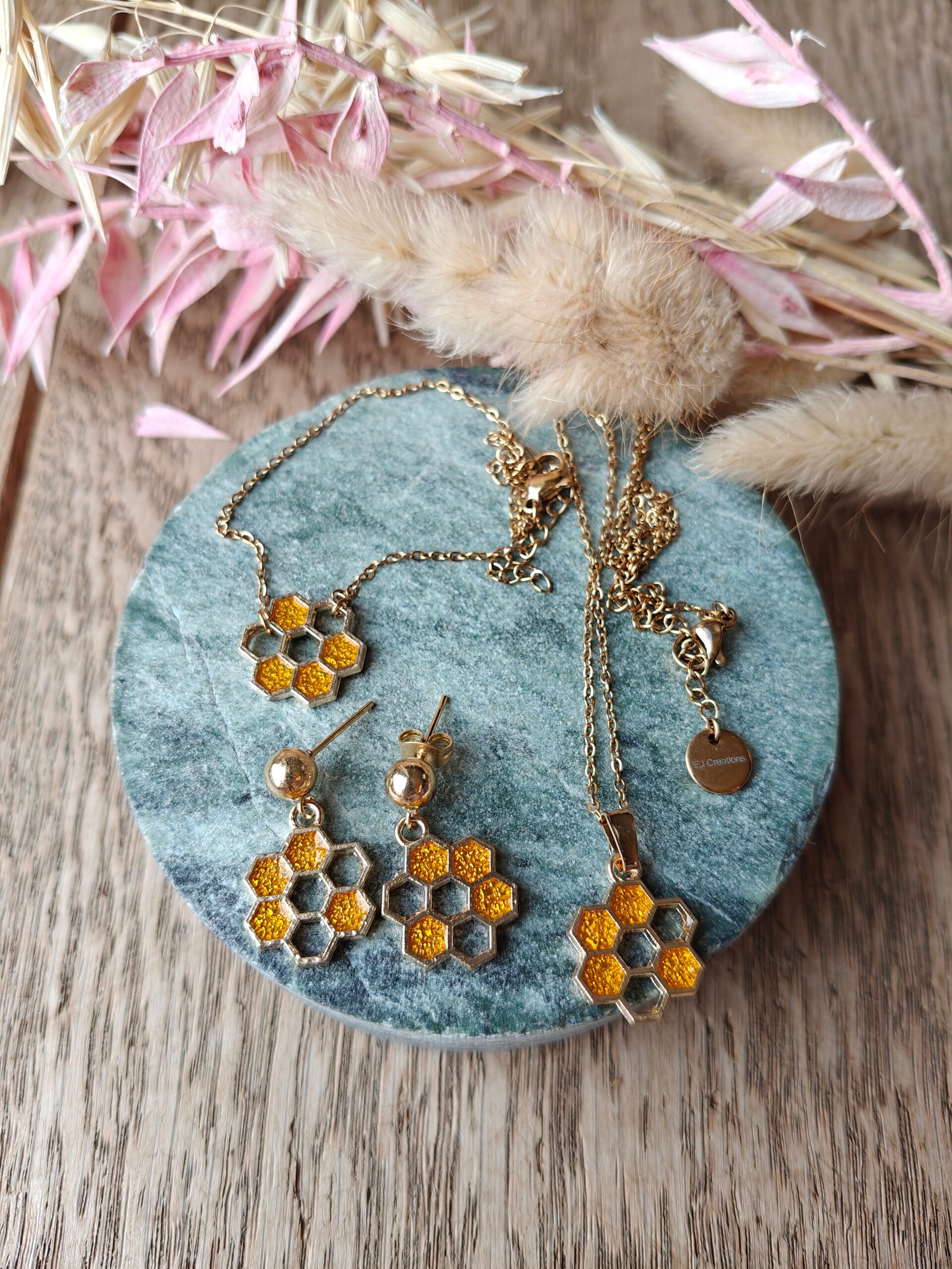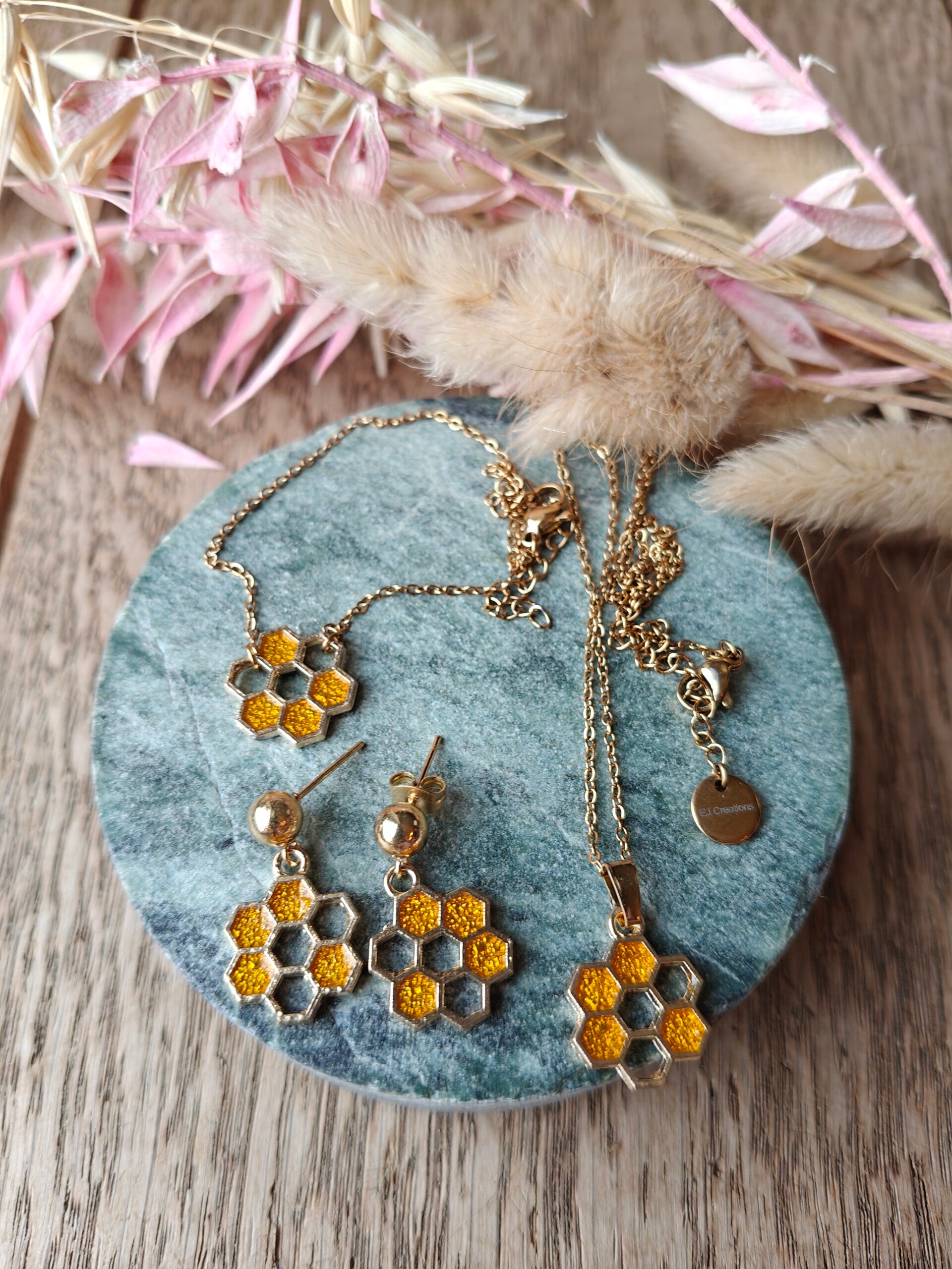 #HandmadeJewelry #Juwelenset #HoneycombDesign #UniekJuweel #EJCreations