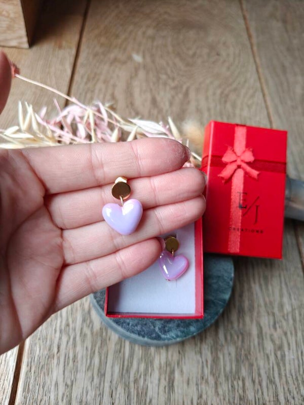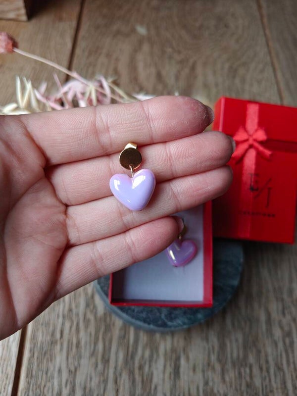 Juwelenset: matching set rood/lila hartjes (twee paar oorbellen)