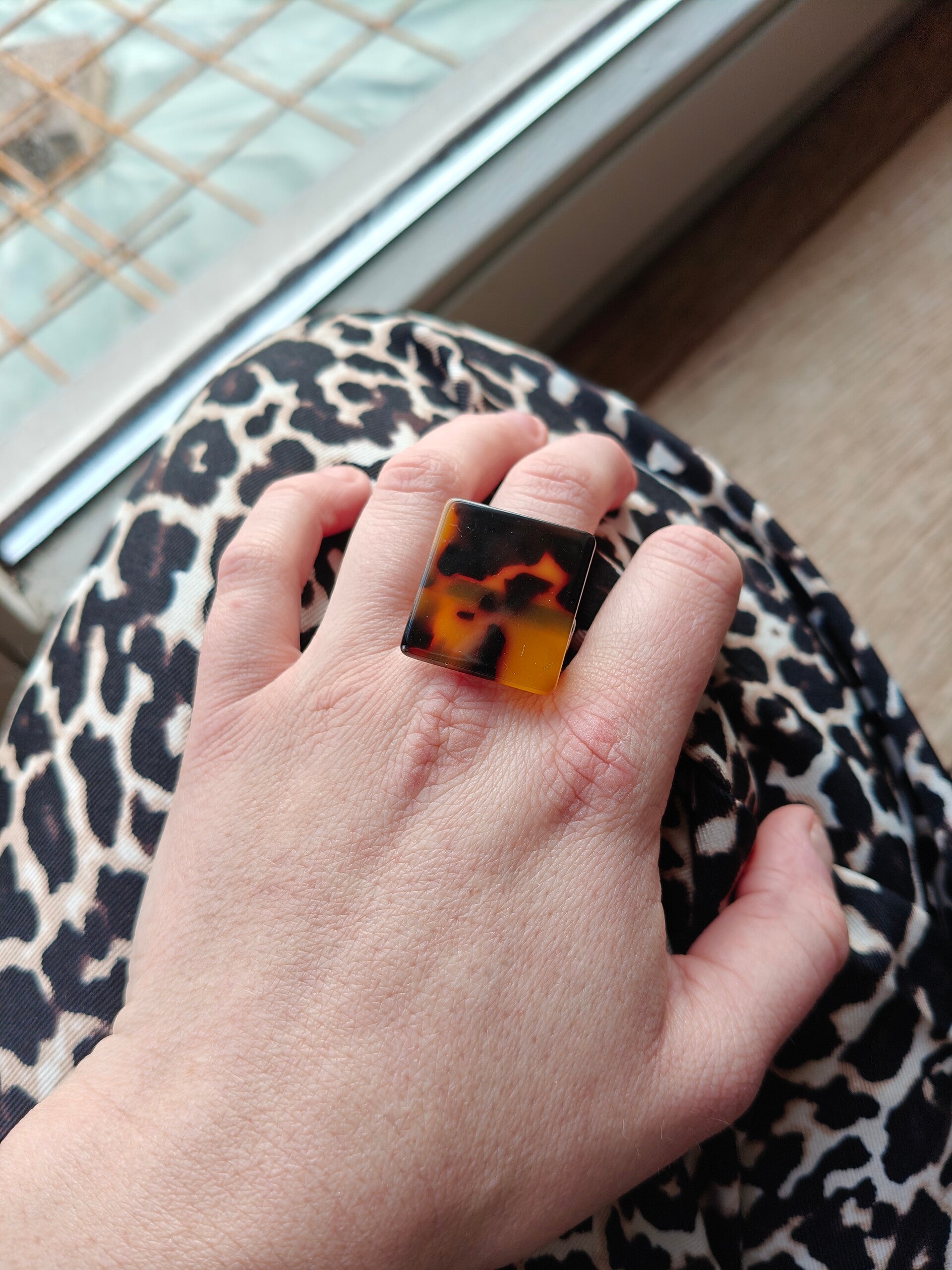 Ring D1: vierkante ring met dierenprint