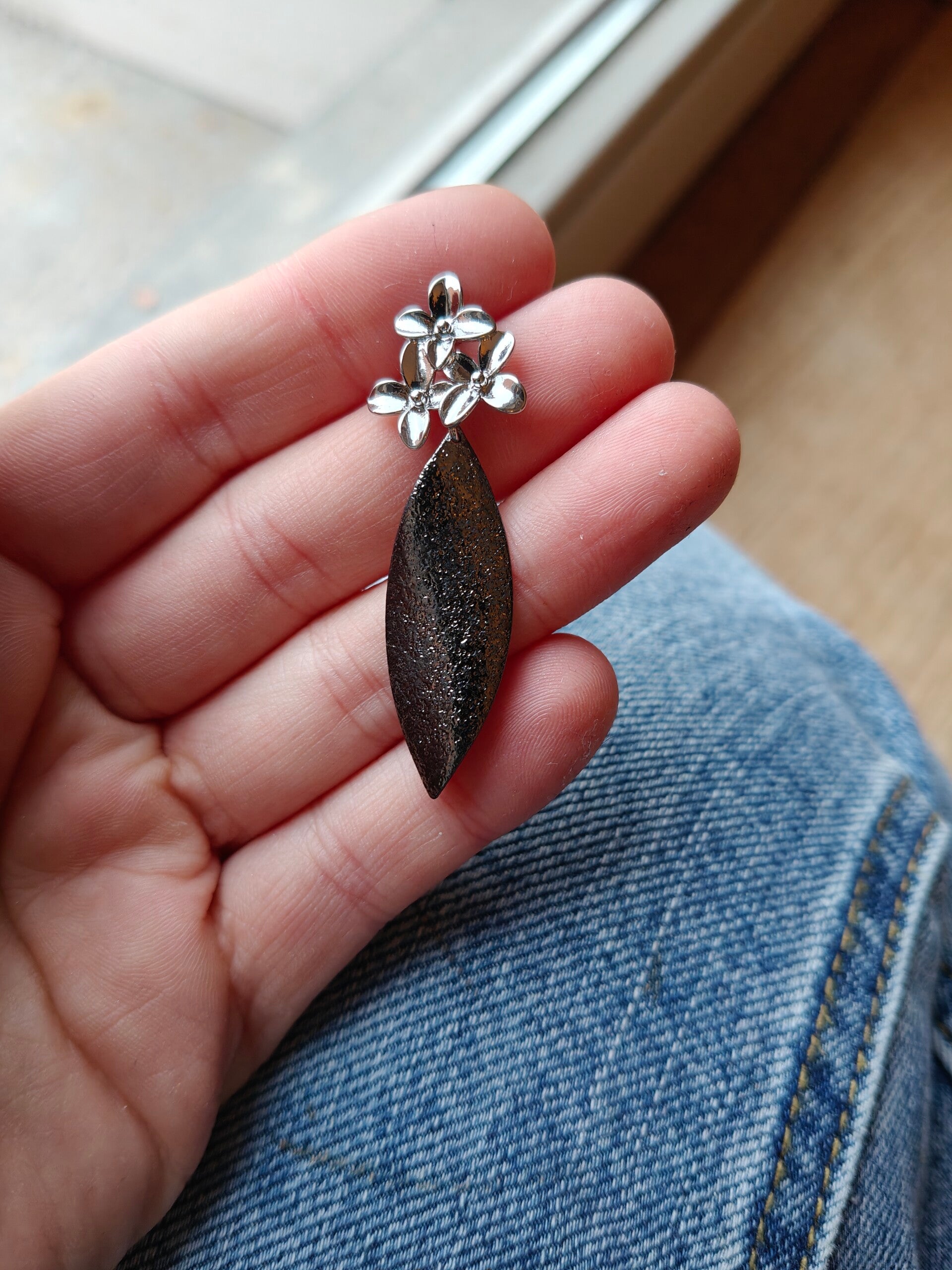 Oorbel: zwarte elegante hanger met zilveren prikker