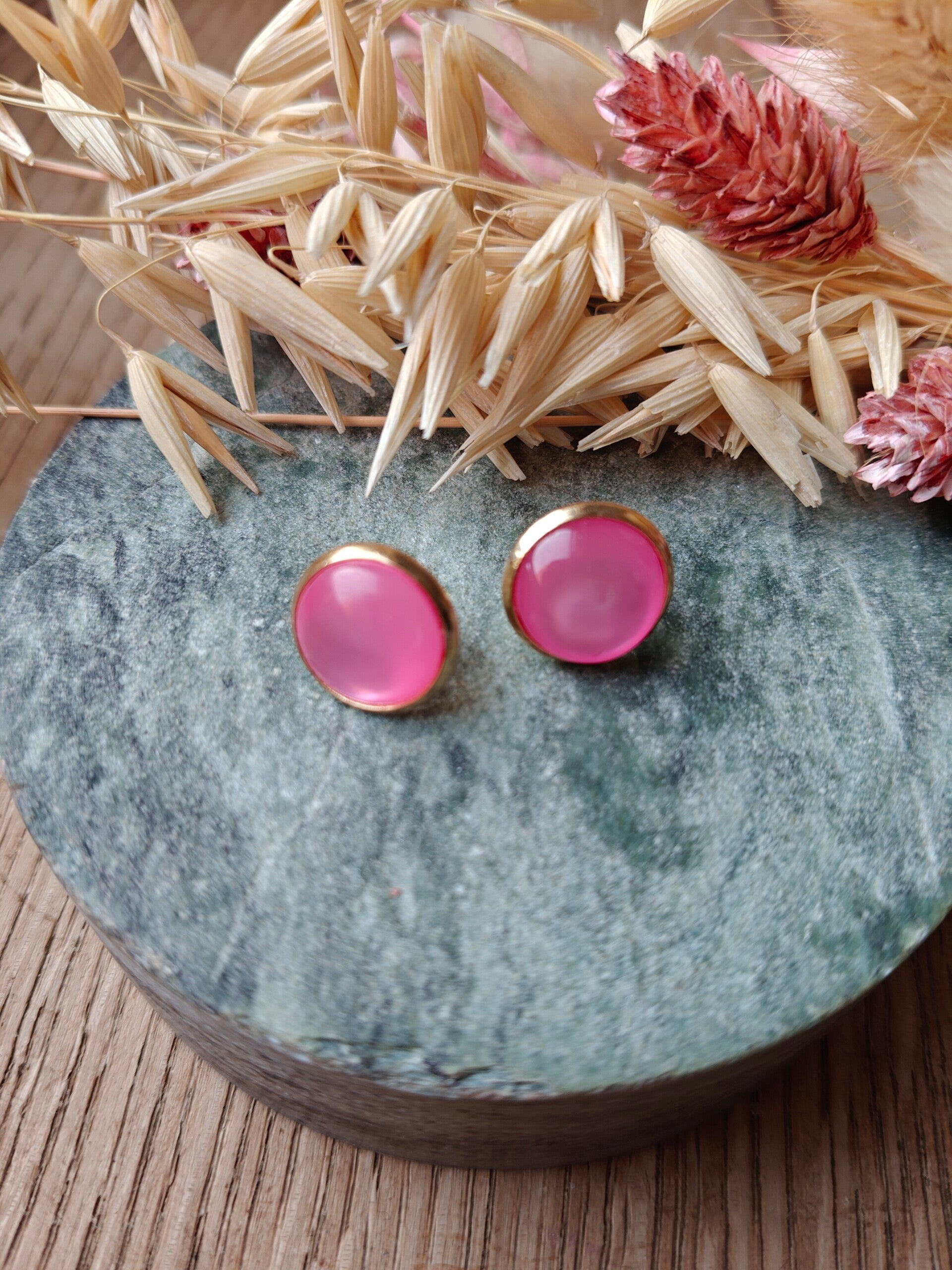 Oorbel KLEIN18: roze studoorbellen