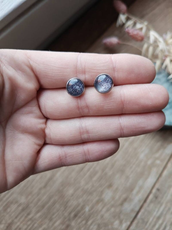 Oorbel KLEIN26: kleine paarse studoorbellen met zilveren frame