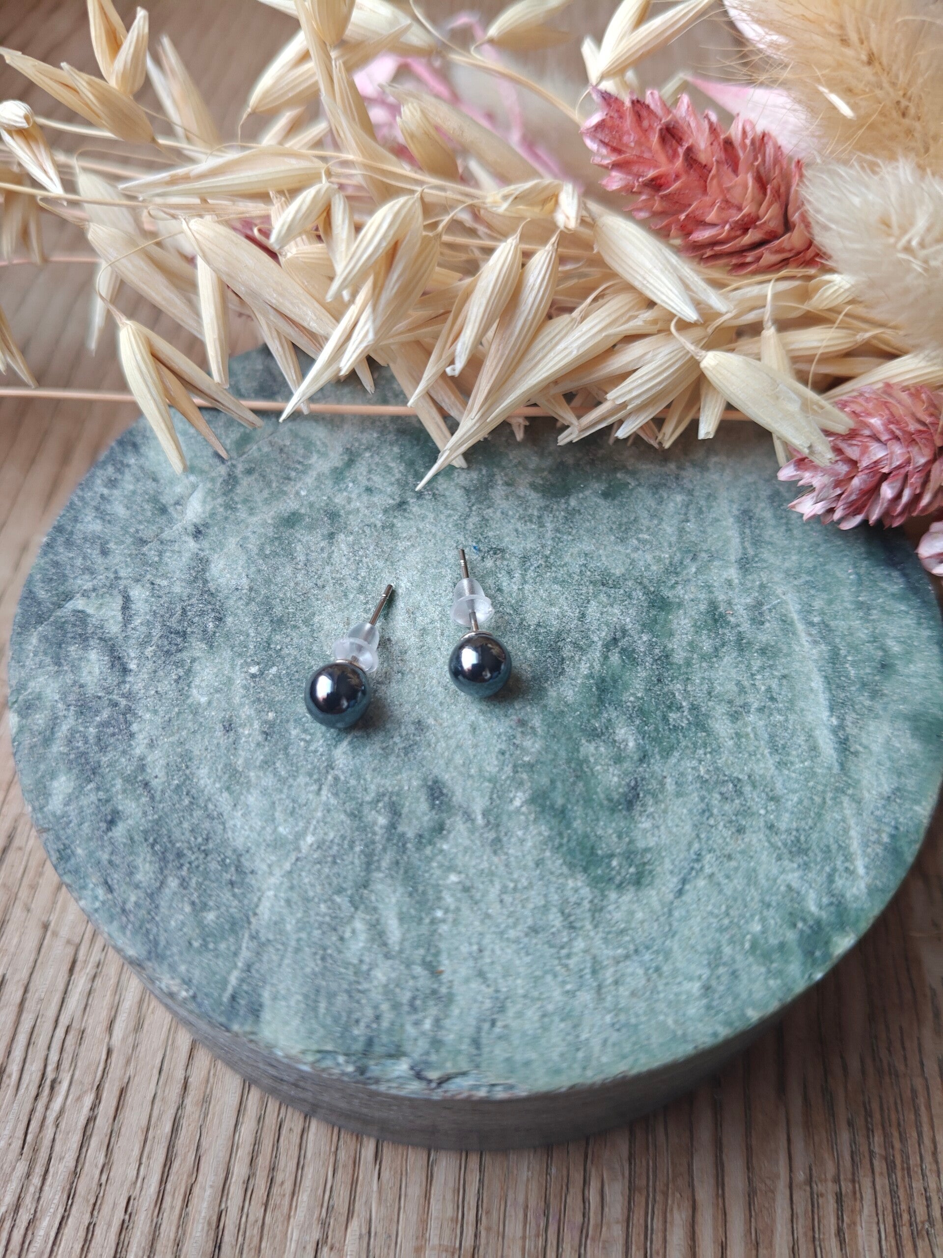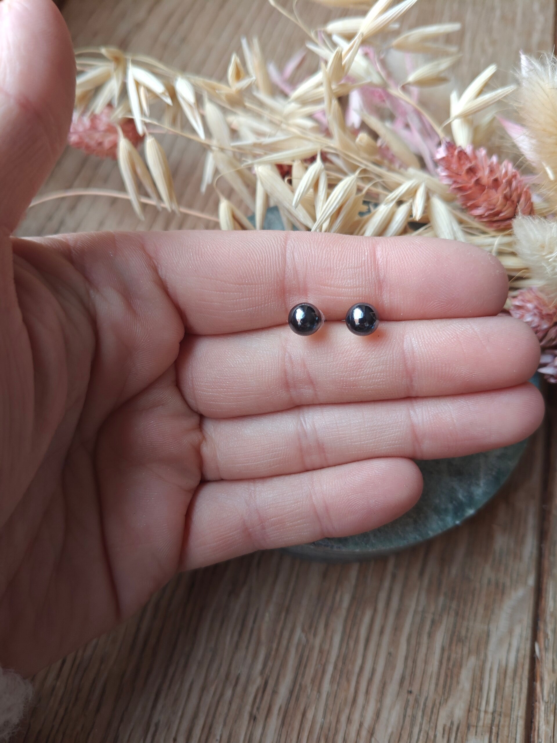 Oorbel KLEIN42: antraciet zwarte boloorbellen