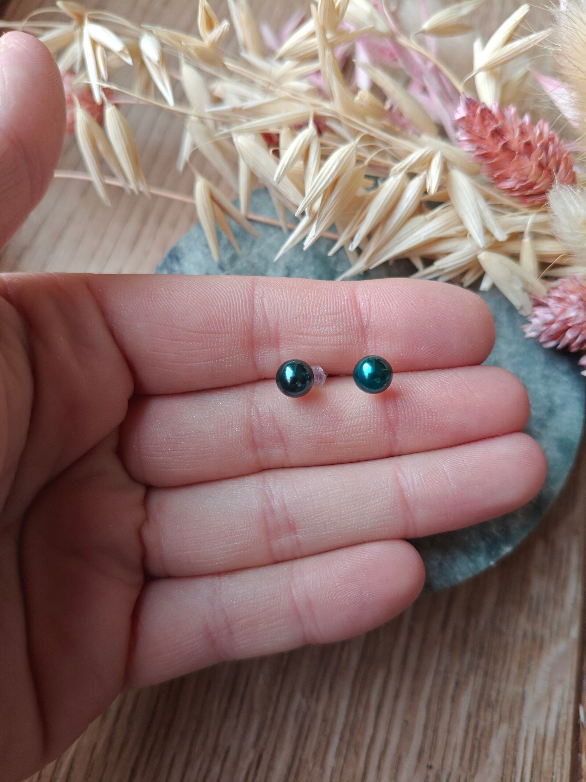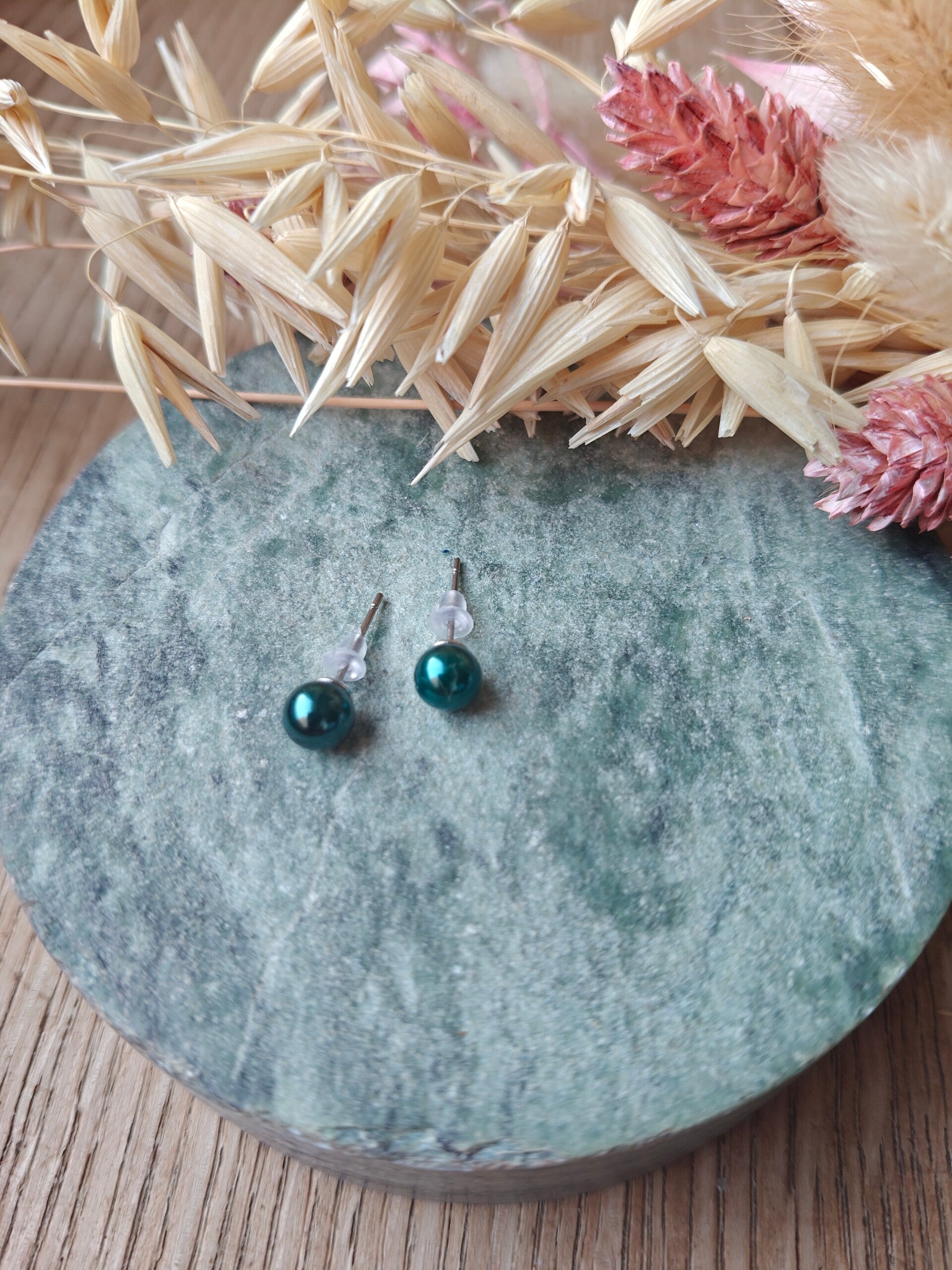Oorbel KLEIN43: groene boloorbellen