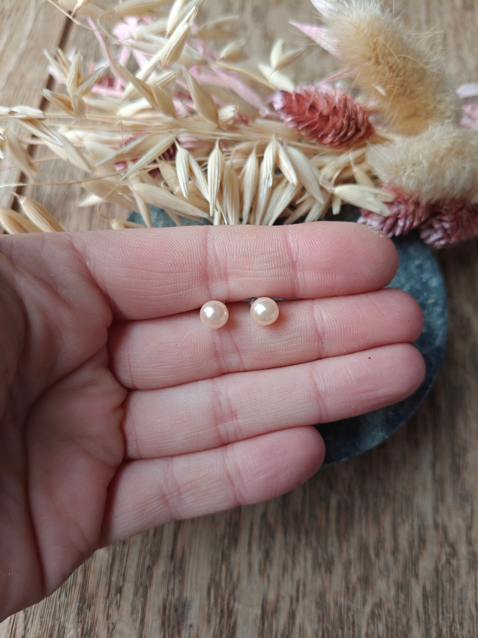 Oorbel KLEIN53: roséchampagne/zeer licht roos kleurige oorbellen.