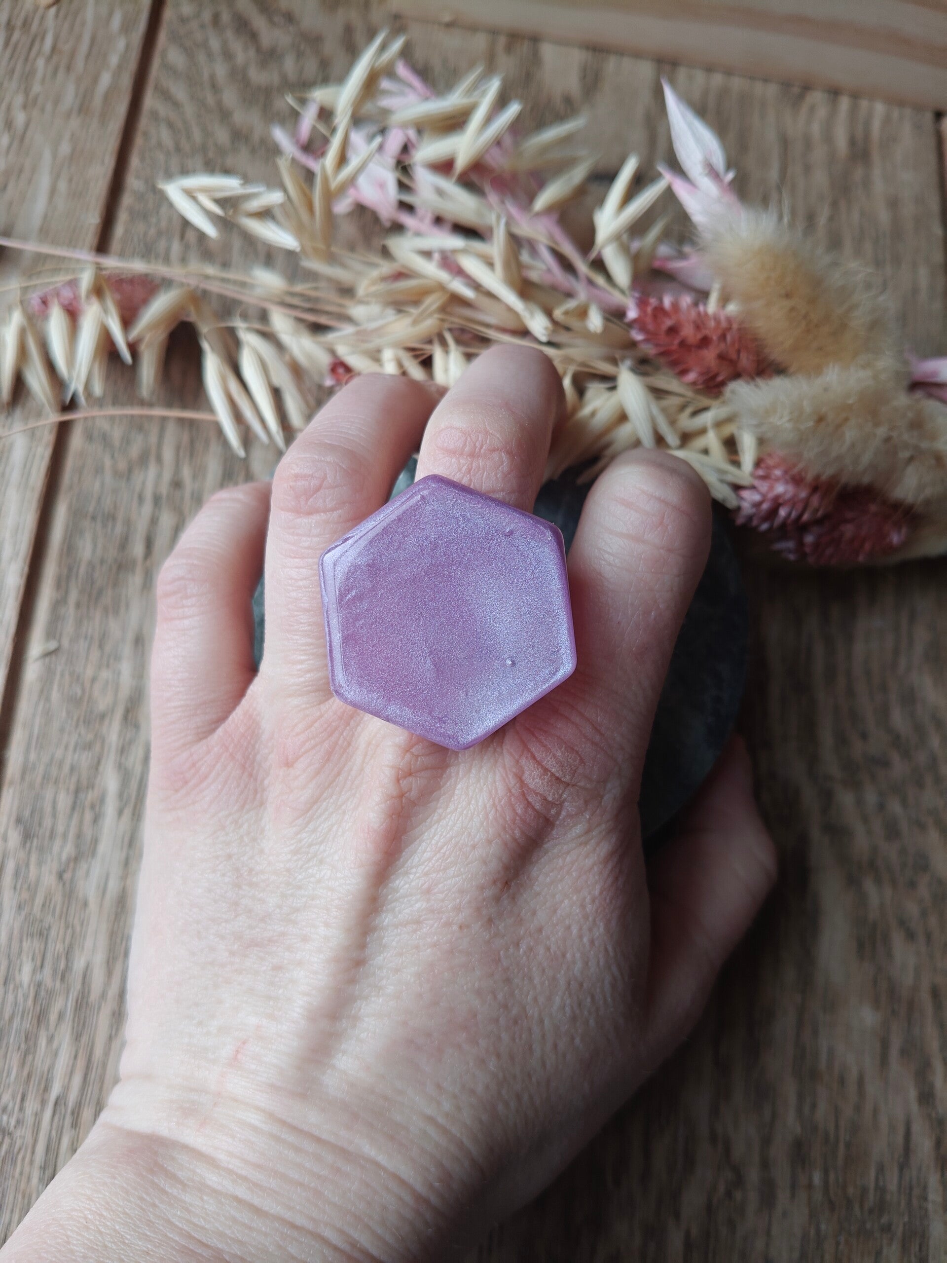 Ring PA6 : verstelbare lila hexagon ring