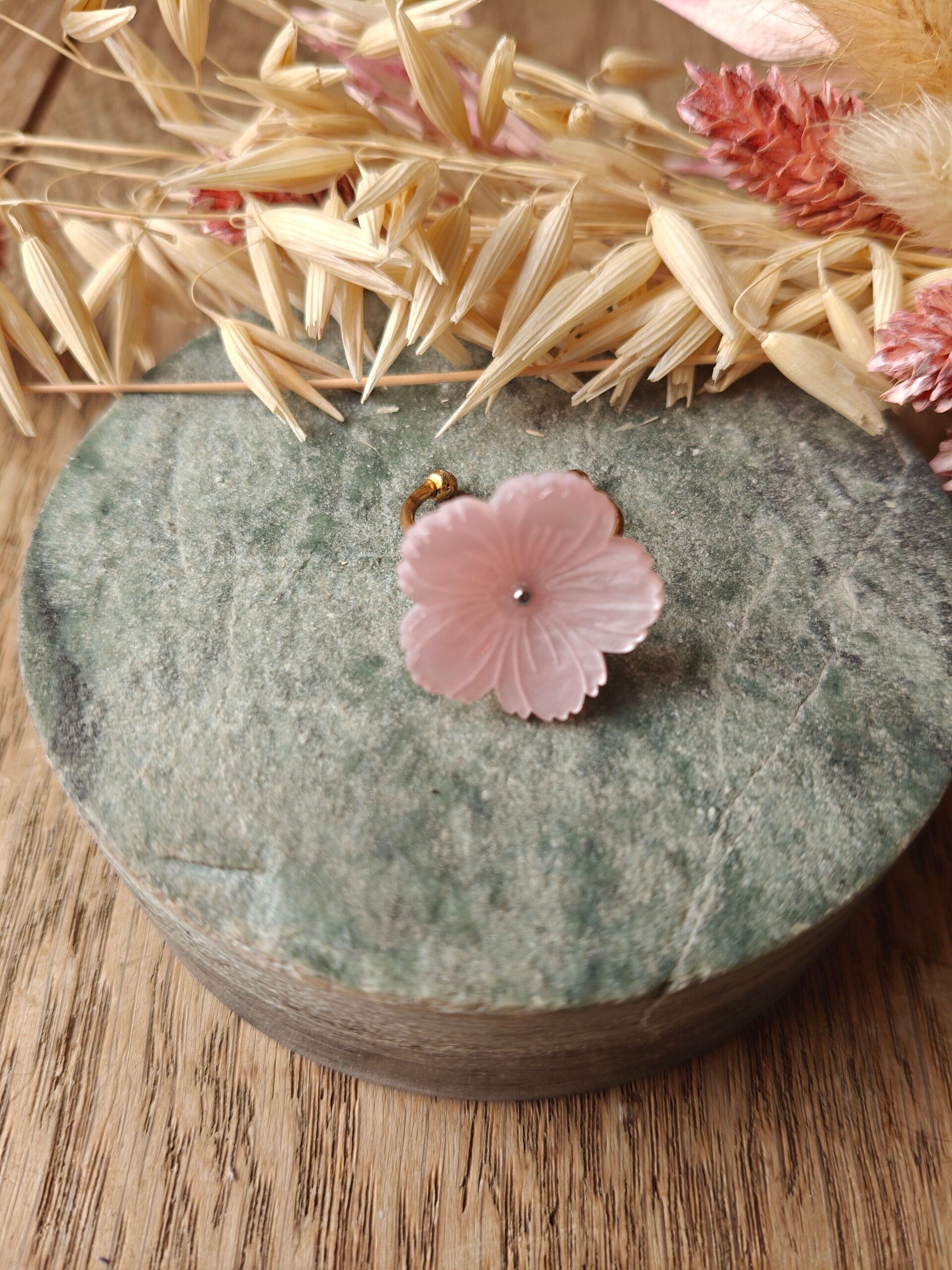 - roze bloem met zilverkleurig bolletje