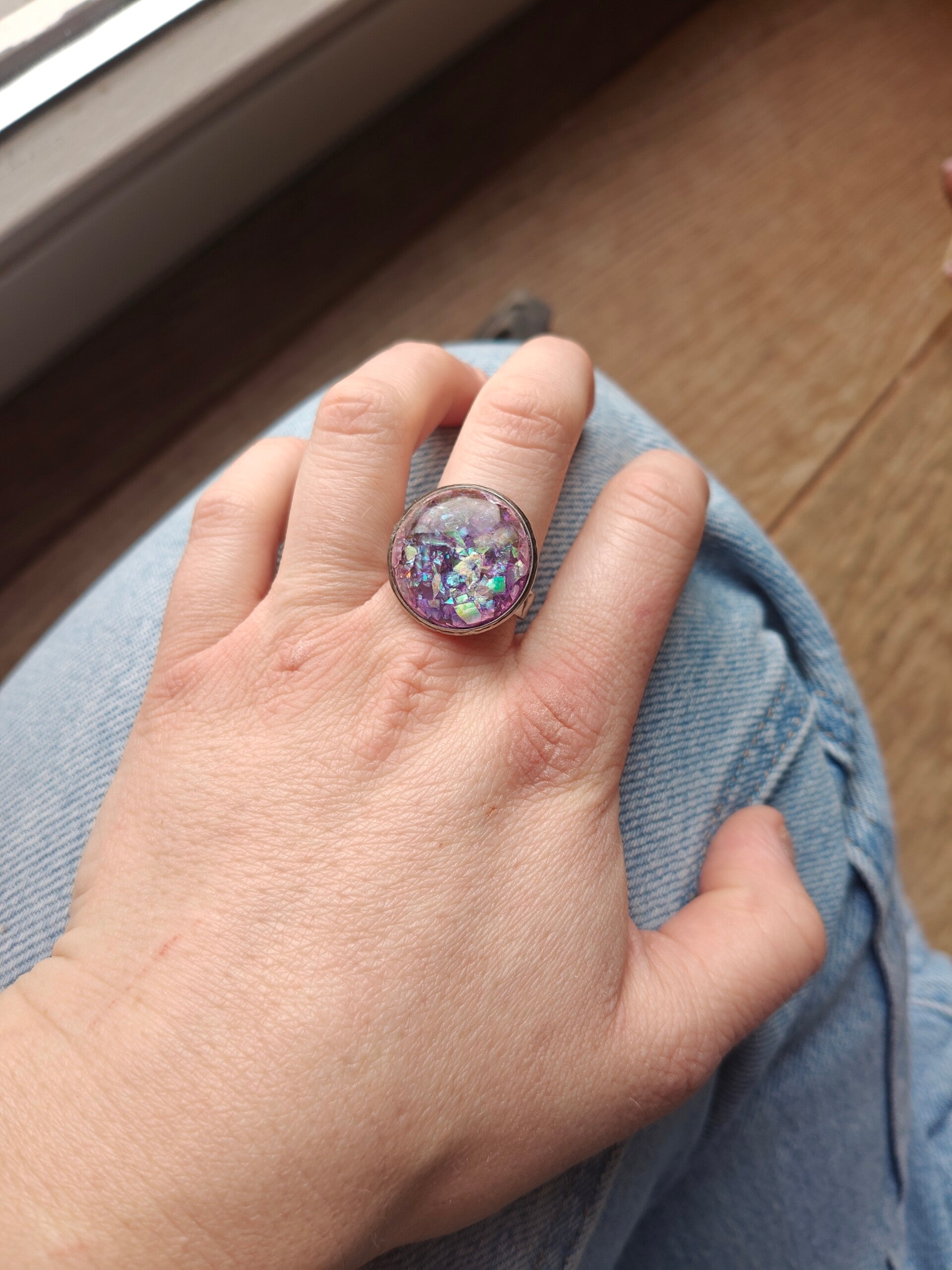 Ring PA8/PA9: paarse verstelbare ring met schakeringen en zilverkleurig frame