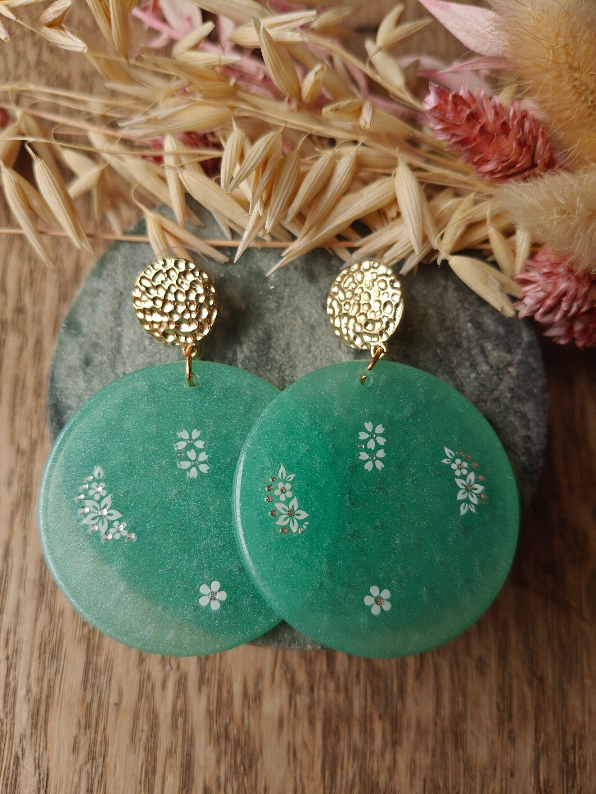 Oorbel UITVERKOOP 6: groene oorbellen met Witten bloemen