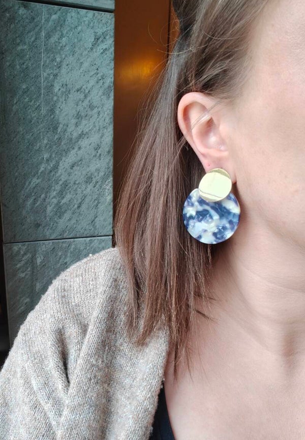 Oorbel UITVERKOOP21: blauwe hanger en gouden prikker
