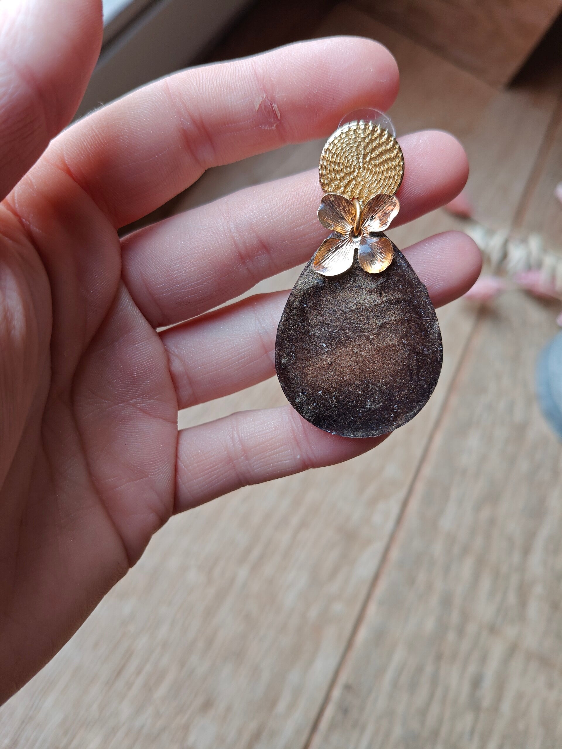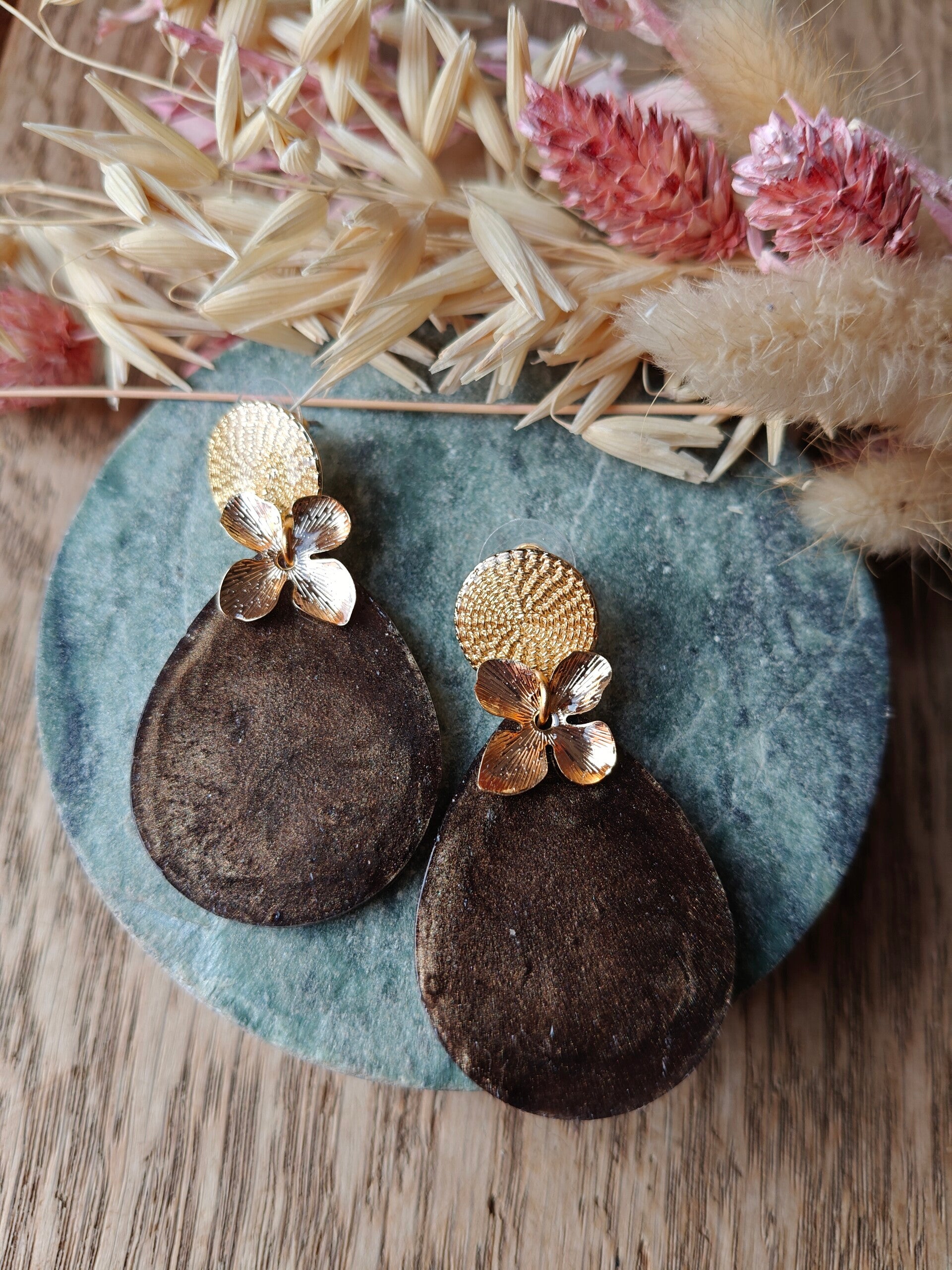 Oorbel BR18: chocoladebruine oorbel met laklaag