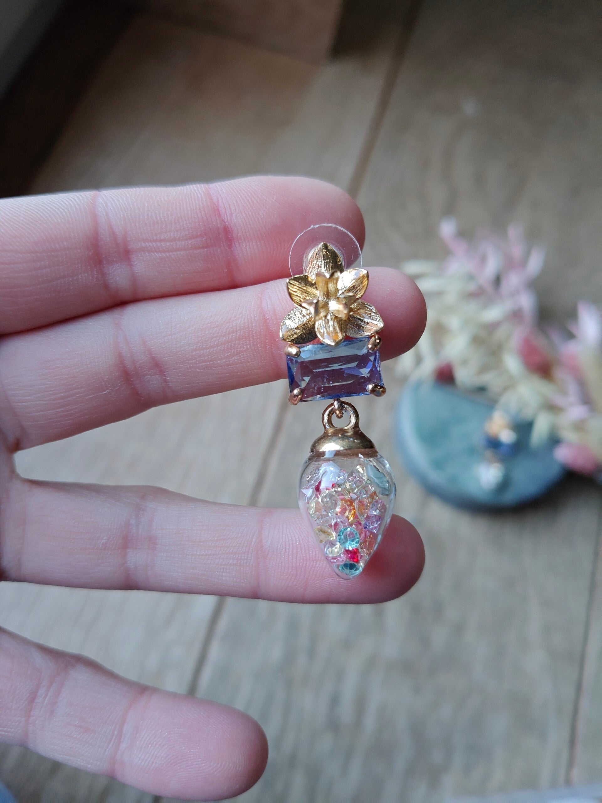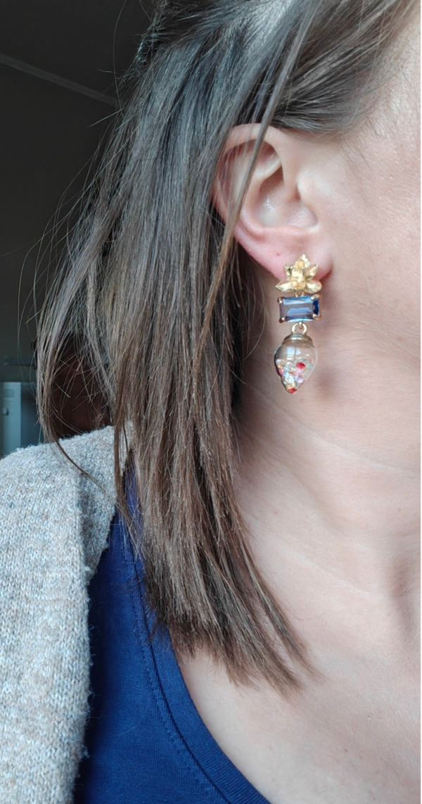 Oorbel MEER7: confetti hanger met blauwe glasprikker